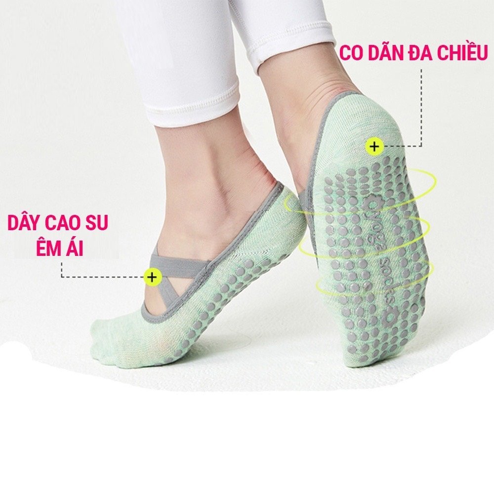 Tất ,Vớ Chân Yoga, tập yoga pilates barre quai chéo chống trượt cao cấp kín ngón