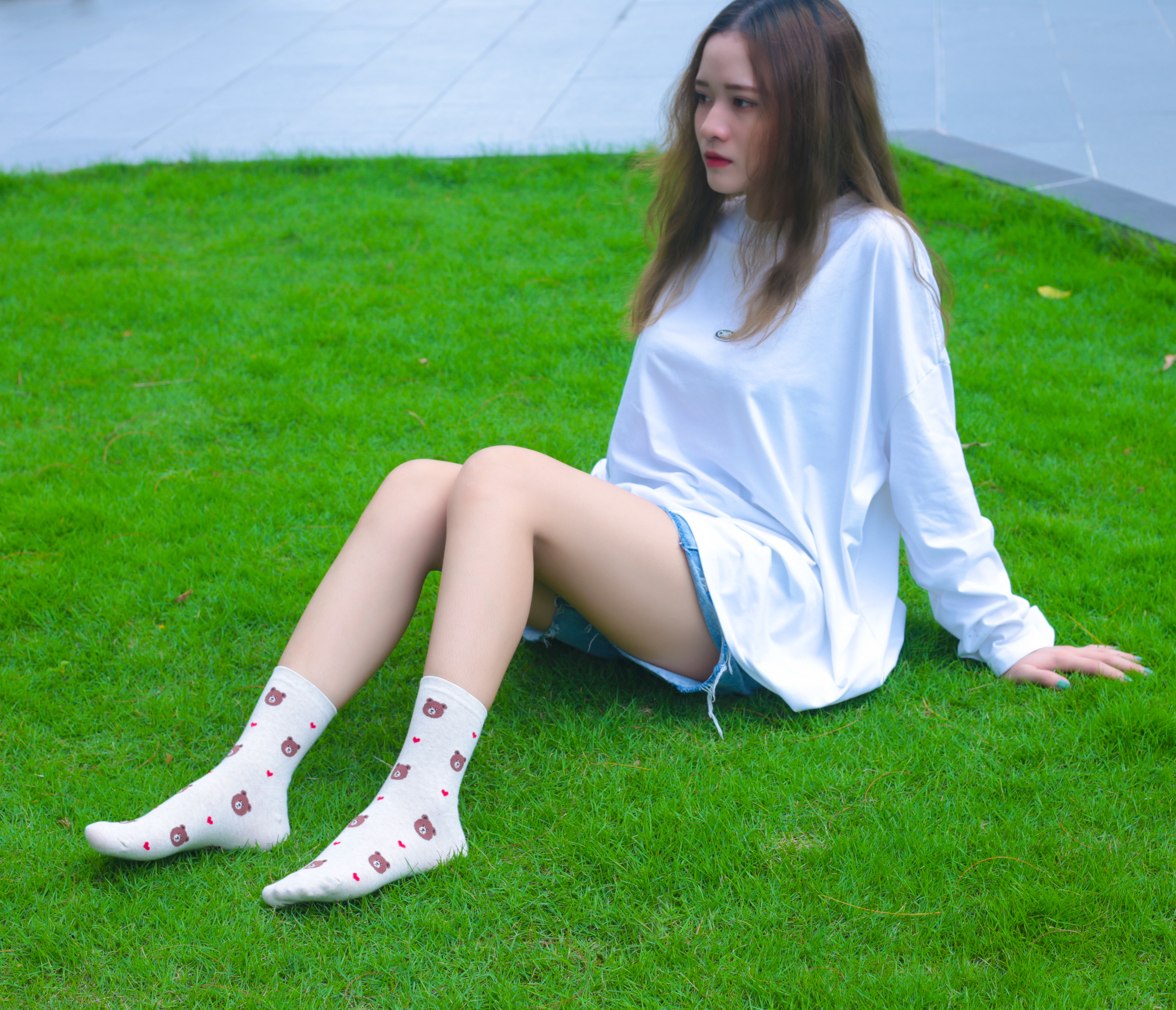 Tất Nữ Cổ Trung Thời Trang Hàn Quốc Họa Tiết Mặt Cười, Vớ Nữ Cổ Lửng Cao Cấp Êm Mềm Thoáng Khí