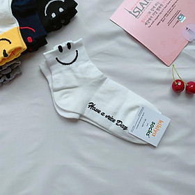 Tất Nữ Cổ Trung Thời Trang Hàn Quốc Họa Tiết Mặt Cười, Vớ Nữ Cổ Lửng Cao Cấp Êm Mềm Thoáng Khí