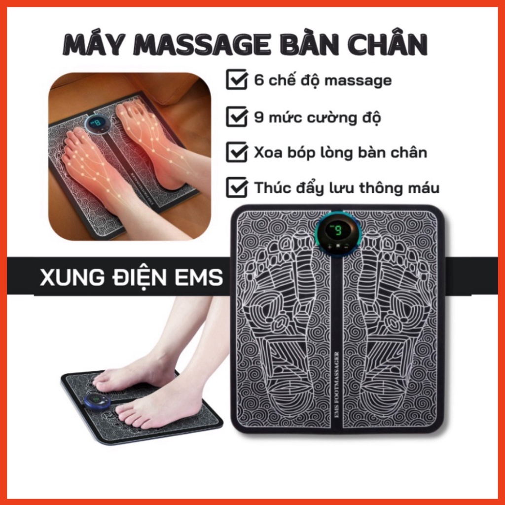 Thảm Massage Chân Xung Điện EMS Giảm Đau Mỏi, Thảm Massage Có Đèn Led Hiển Thị, 6 Chế Độ Mát Xa Bàn Chân - HÀNG CHÍNH HÃNG MINIIN