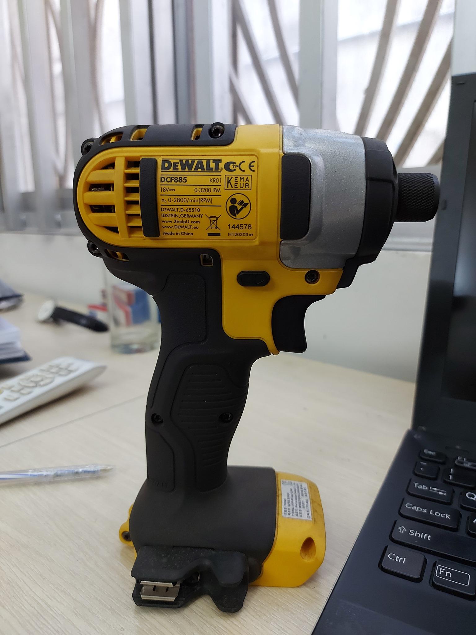 - Máy vặn vít động lực pin Dewalt DCF885N-KR hoạt động mạnh mẽ là dòng máy chuyên nghiệp, được thiết kế chắc chắn, có khả năng chịu nhiệt, chịu va đập tốt, khả năng thích nghi với mọi môi trường làm việc.