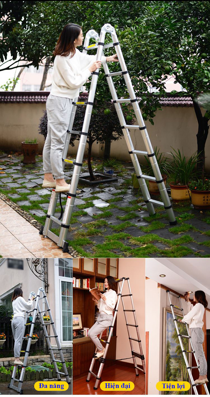 Thang nhôm xếp rút gọn được sử dụng rộng rãi trong các gia đình, cơ quan, xí nghiệp. Các sản phẩm thang nhôm rút gọn có trọng lượng siêu nhẹ. Điều này giúp thang dễ