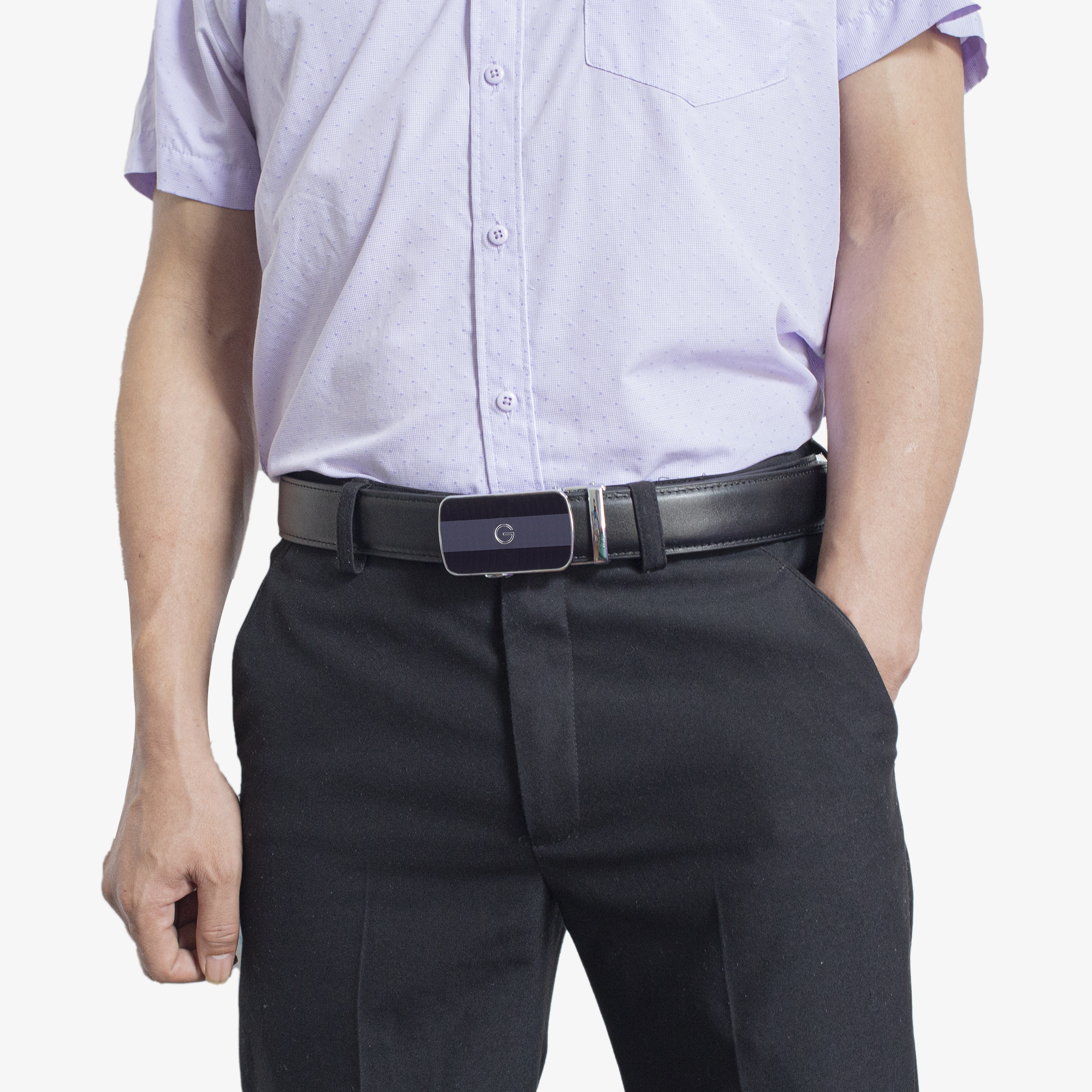 Thắt lưng nam da Saffiano 3 lớp màu đen-khóa tự động nhiều mặt lựa chọn
