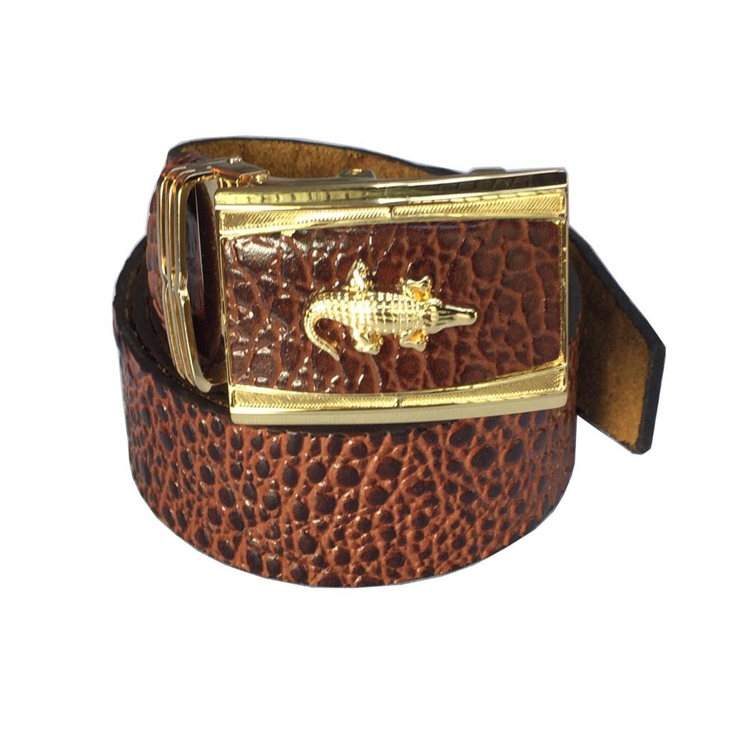 Thắt lưng nam da thật mặt khóa tự động bằng thép sáng bóng không gỉ