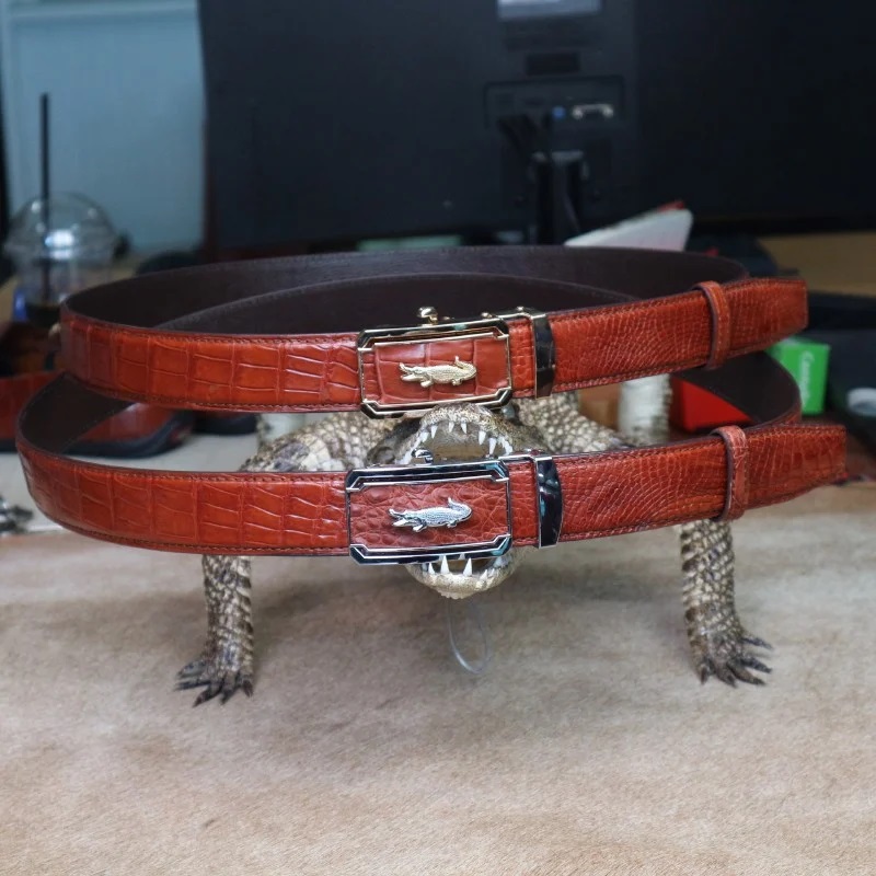 Thắt lưng da cá sấu nam, dây liền nguyên con không ghéo nối #leathercraft #thatlungnam
