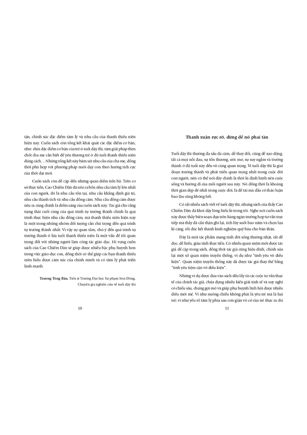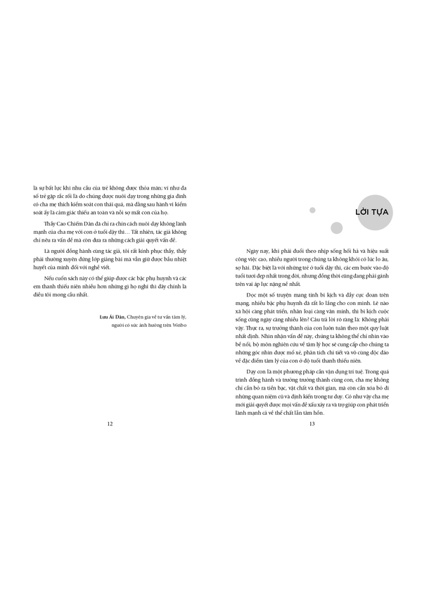 Cuốn sách "Thấu hiểu và đồng hành cùng con ở độ tuổi thanh thiếu niên" của tác giả Cao Chiếm Dân là chìa khóa dành cho bạn. Dựa trên kinh nghiệm dày dặn trong tư vấn tâm lý trẻ em, đặc biệt là thanh thiếu niên, tác phẩm này cung cấp: