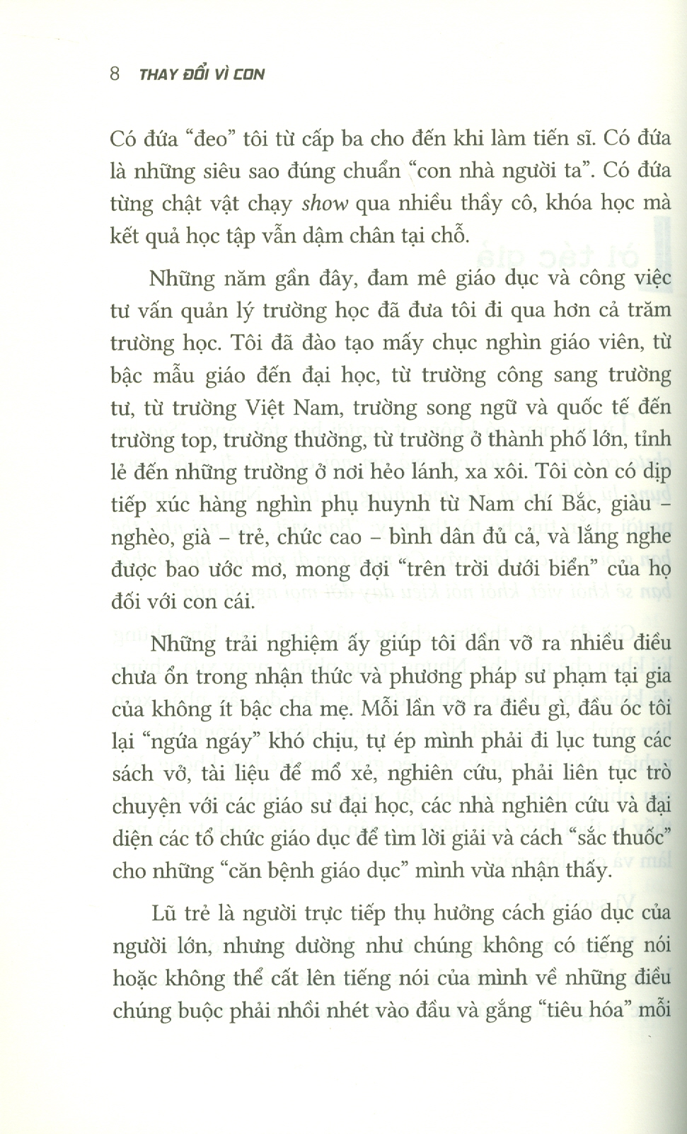Thấu hiểu khao khát cháy bỏng đi tìm sự giáo dục ưu việt cho trẻ trong lòng các phụ huynh, bất chấp nhiều đắn đo do dự, tác giả Nguyễn Chí Hiếu vẫn quyết định