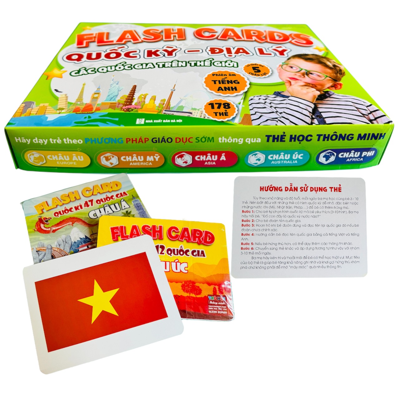 Với những ưu việt trong thiết kế và cách dạy, Bộ Thẻ Học Quốc kỳ Các nước Song ngữ TUANVIET BOOKS sản phẩm độc đáo và hữu ích, được thiết kế đặc biệt để giúp bạn và con em khám phá thế giới qua các ngôn ngữ và quốc kỳ của 178 quốc gia trên 5 châu lục theo chuẩn Glenn Doman.