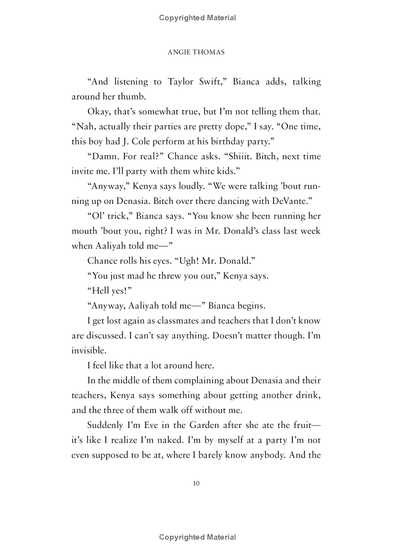 Soon afterward, his death is a national headline. Some are calling him a thug, maybe even a drug dealer and a gangbanger. Protesters are taking to the streets in Khalil’s name. Some cops and the local drug lord try to intimidate Starr and her family. What everyone wants to know is: what really went down that night? And the only person alive who can answer that is Starr.