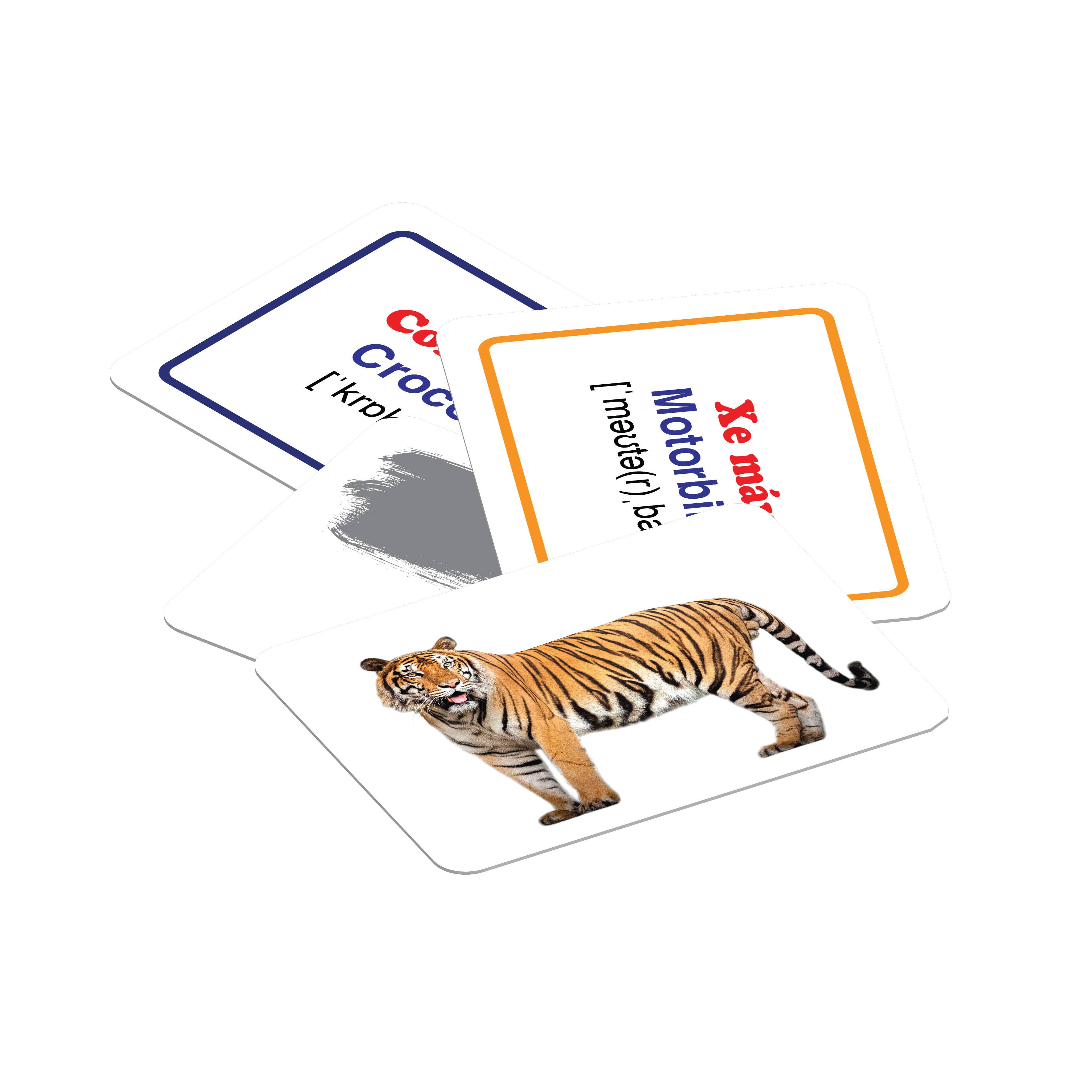 Thẻ được in bằng chất liệu giấy thân thiện với môi trường và màu mực thân thiện với sức khỏe của bé. Chưa hết, trên mỗi thẻ học, Tuấn Việt Books còn in ẵn tên thẻ bằng cả tiếng Anh (kèm phiên âm) và tiếng Việt giúp bé phát triển bộ ngôn ngữ thật hoàn hảo!