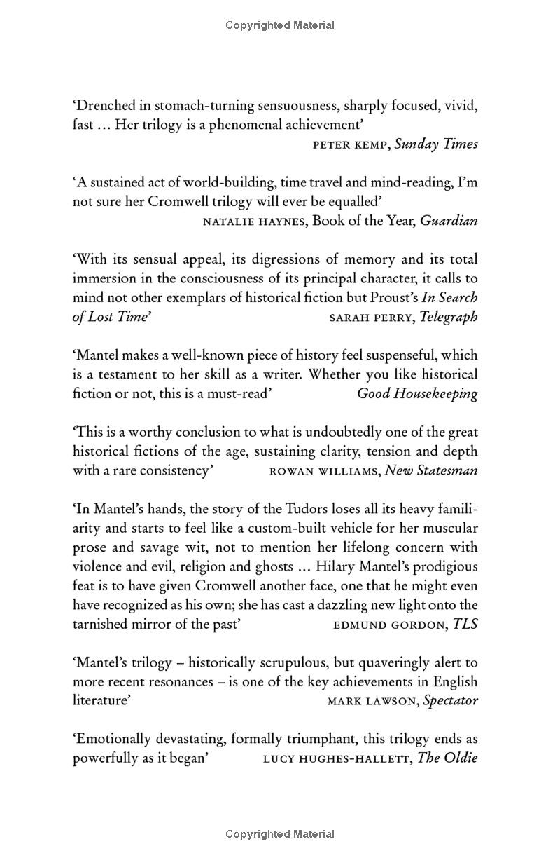 The Sunday Times bestselling sequel to Wolf Hall and Bring Up the Bodies, the stunning conclusion to Hilary Mantel’s Man Booker Prize-winning Wolf Hall trilogy.