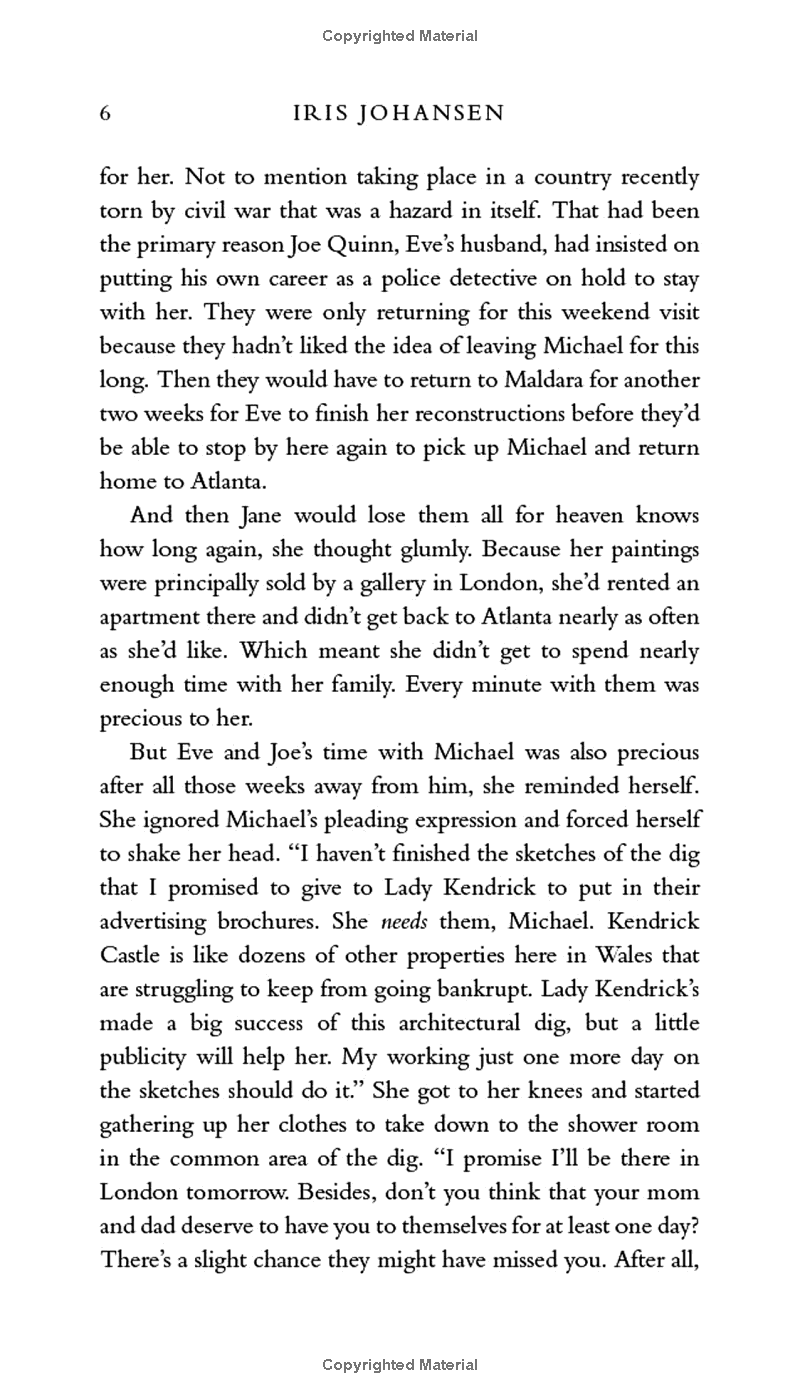Forensic sculptor Eve Duncan and ex-Navy Seal Joe Quinn are about to give Seth Caleb their trust for the most important duty of his life: keeping their daughter, Jane, safe at any cost. Her talent as an artist has caught the attention of a brilliant psychopath with a violent past.