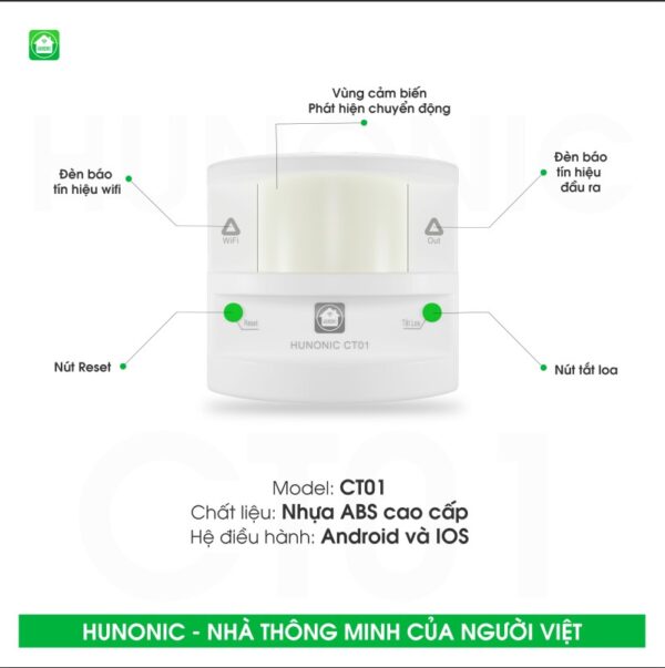 Giới Thiệu Sản Phẩm Thiết Bị Chống Trộm Và Báo Khách CT01 Trong thời đại công nghệ hiện nay, cuộc sống đã trở nên tiện lợi hơn bao giờ hết với sự phát triển của smart home và các thiết bị thông minh. Tuy nhiên, cùng với những tiện ích đó cũng có những rủi ro về an ninh và trộm cắp ngày càng trở nên nguy hiểm hơn, khiến cho việc bảo vệ tài sản và an toàn cho người thân trở thành mối quan tâm hàng đầu của nhiều gia đình. Là một nhà phát triển về thiết bị nhà thông minh, Hunonic không thể bỏ qua giải pháp thiết thực và cấp thiết hiện nay là an ninh thông minh, từ đó các kĩ sư Hunonic đã nghiên cứu và cho ra đời sản phẩm Thiết bị chống trộm CT01 Tính năng của thiết bị chống trộm CT01 ️ - Phát hiện chuyển động – còi hú cảnh báo ️ - Thông báo có xâm nhập về điện thoại ️ - Sử dụng công nghệ Wifi – Hoạt động độc lập ️ - Có Giấy Hướng Dẫn,Dễ Dàng Sử Dụng Và Lắp Đặt Thông số kĩ thuật sản phẩm thiết bị chống trộm CT01