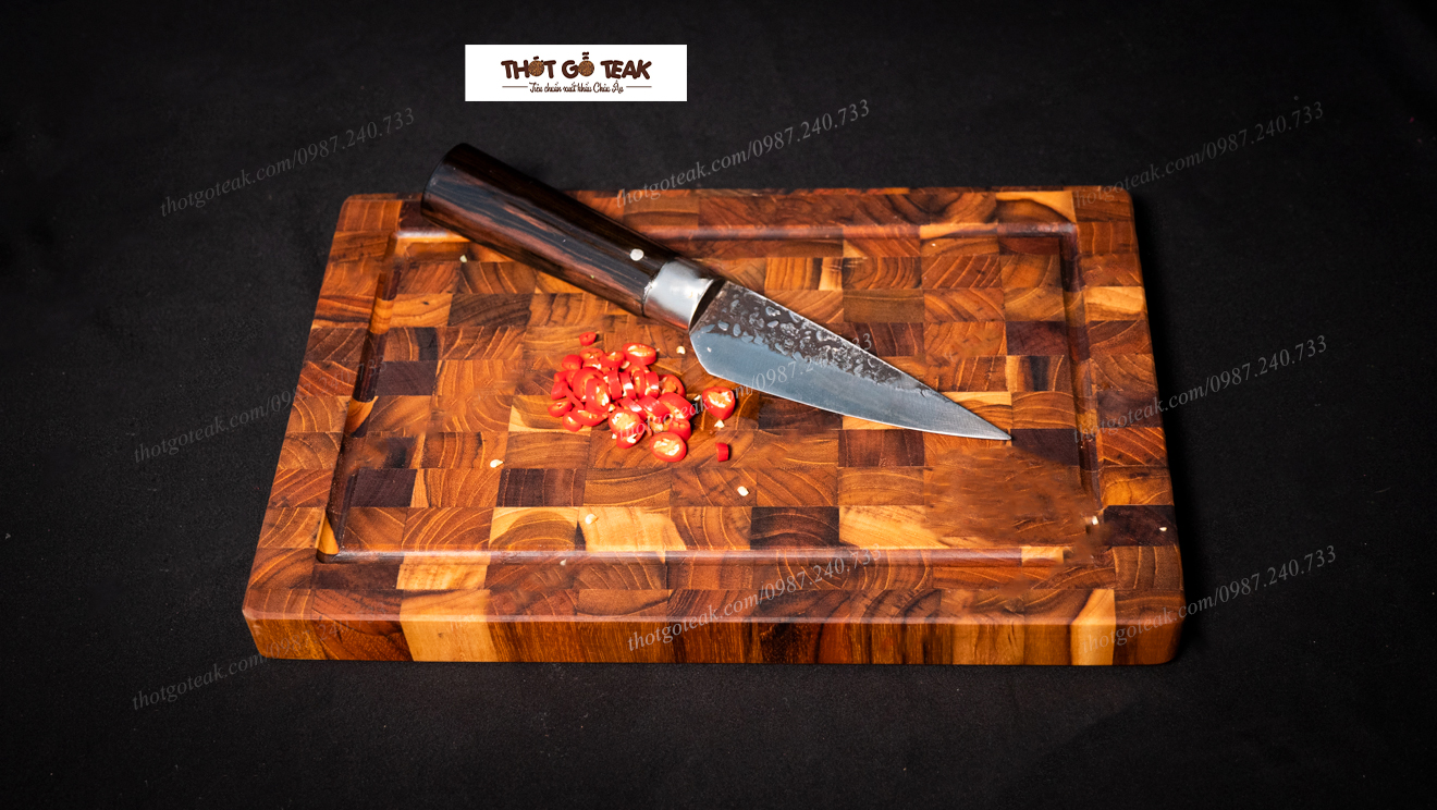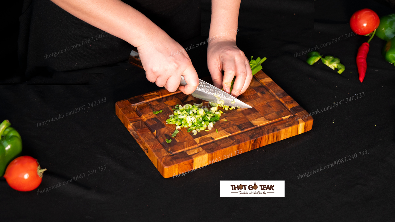 Thớt gỗ teak bền đẹp - Trải nghiệm thớt teak CNT04