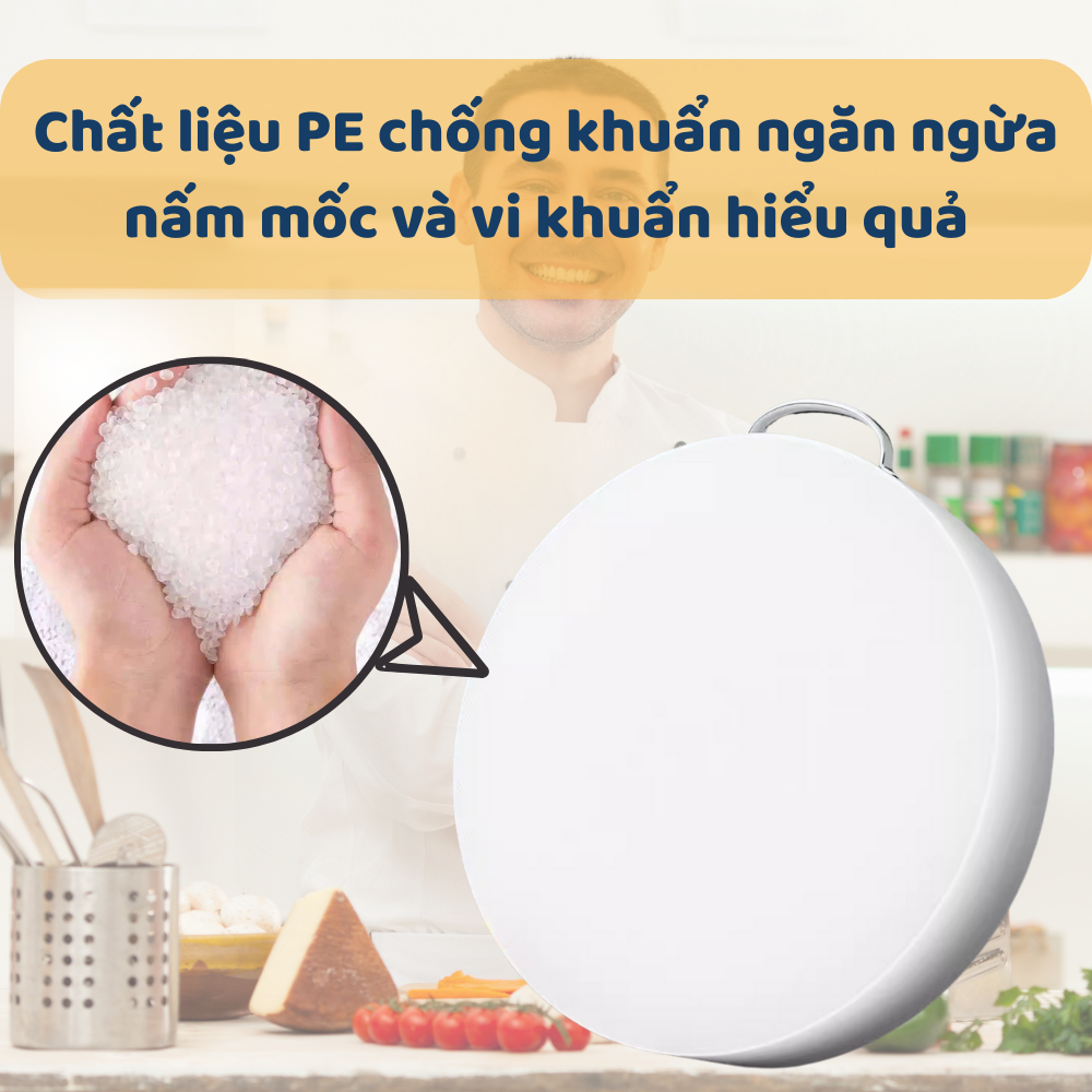 THỚT NHỰA TRÒN CHO GIA ĐÌNH, NHÀ HÀNG, QUÁN ĂN CÔNG DỤNG SẢN PHẨM - Dùng để thái, chặt, cắt, băm thực phẩm: rau củ, thịt, cá, trái cây… - Chống thấm nước, không hút