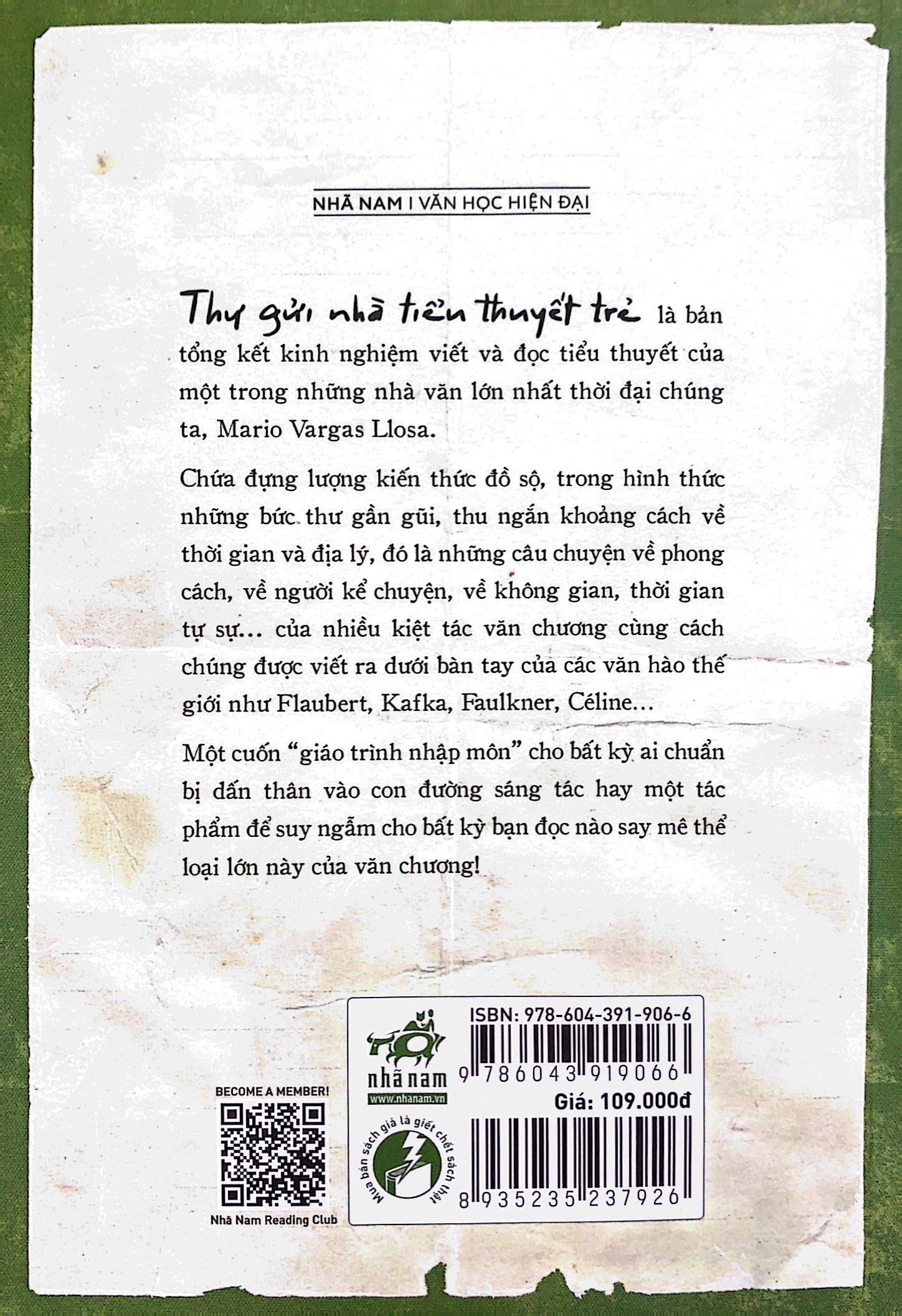 Thư gửi nhà tiểu thuyết trẻ là bản tổng kết kinh nghiệm viết và đọc tiểu thuyết của một trong những nhà văn lớn nhất thời đại chúng ta, Mario Vargas Llosa.