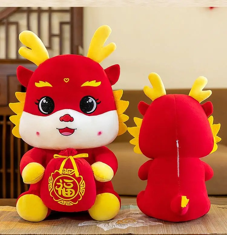 ✨Thú nhồi bông rồng thần tài ôm túi tiền đáng yêu - Size từ 22cm đến 70cm - Quà tặng gấu bông rồng đỏ may mắn êm mịn