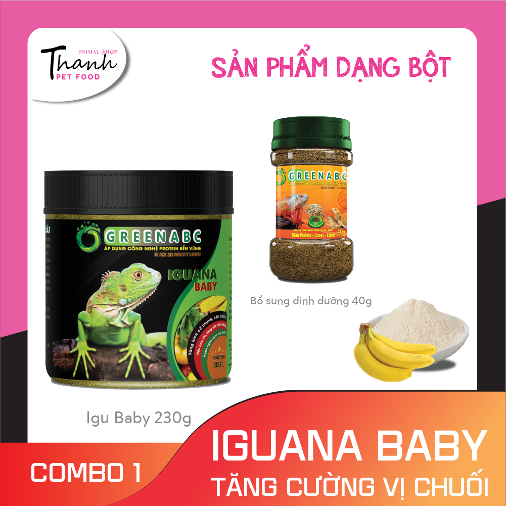 GREENABC - THỨC ĂN IGUANA BABY VỊ CHUỐI - Rồng Nam Mỹ Baby vị Chuối từ mới nở đến 9x. GREENABC là thức ăn cao cấp dành cho Iguana Baby - Rồng Nam Mỹ Baby