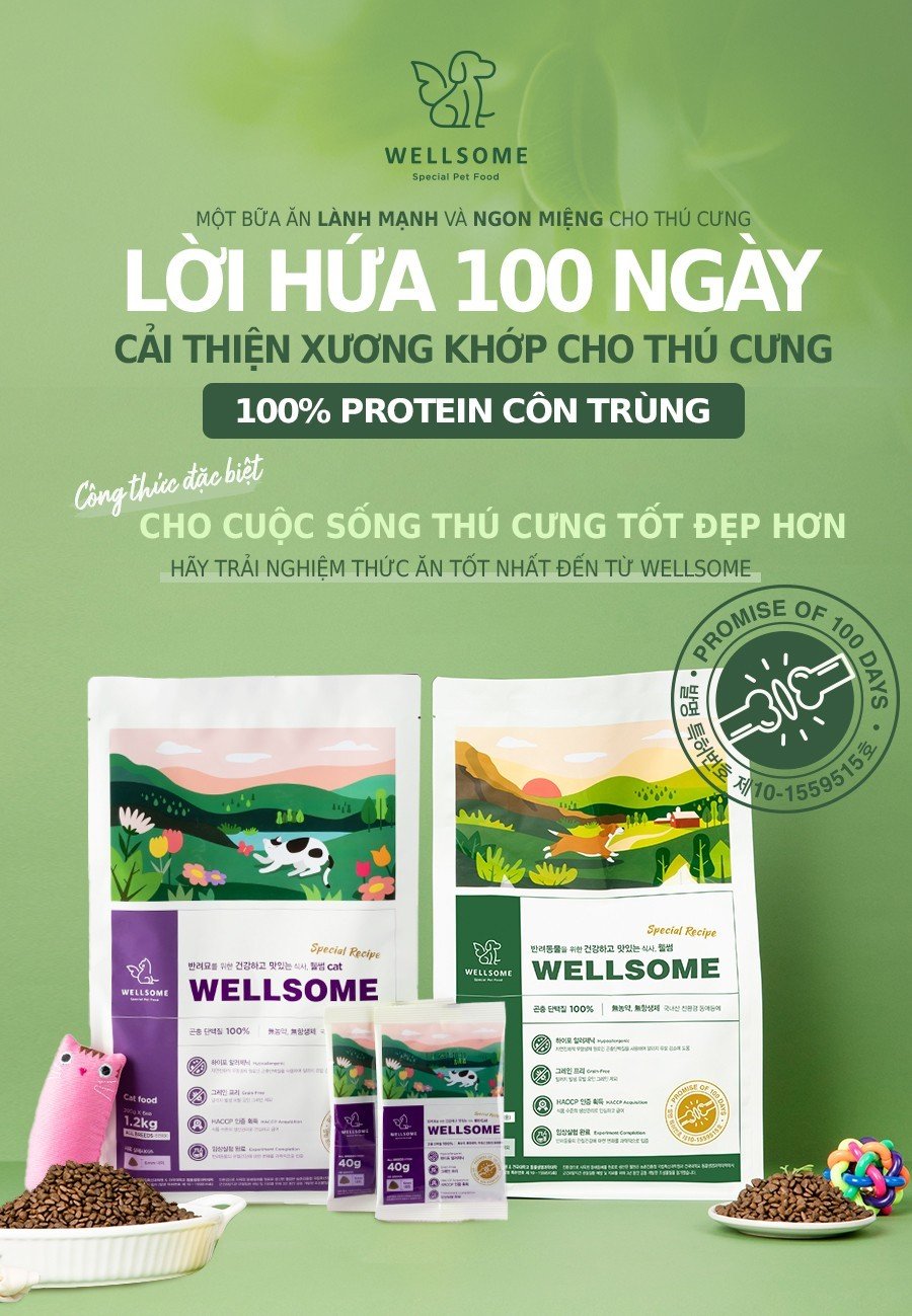 ✨Thức ăn hạt cho chó WELLSOME 100% protein côn trùng 1,2kg