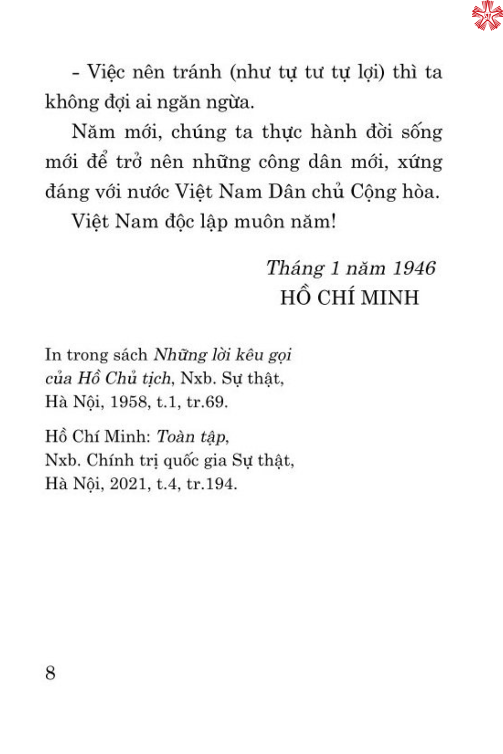 Mua tại TiktokNhằm góp phần làm rõ tư tưởng Hồ Chí Minh về cần, kiệm, liêm, chính, Nhà xuất bản Chính trị quốc gia Sự thật xuất bản cuốn sách Thực hành cần, kiệm, liêm, chính. Cuốn sách tập hợp 23 bài viết, bài nói của Chủ tịch Hồ Chí Minh về thực hành cần, kiệm, liêm, chính; phòng, chống quan liêu, tham nhũng, lãng phí; khắc phục bệnh tự kiêu, tự ái, xây dựng đời sống mới xã hội chủ nghĩa; góp phần giúp cán bộ, đảng viên và nhân dân hiểu rõ hơn tư tưởng Hồ Chí Minh, tích cực học tập và làm theo tư tưởng, đạo đức và phong cách Hồ Chí Minh, thi đua thực hành tiết kiệm, xây dựng đời sống mới trong mỗi cá nhân, gia đình và góp phần xây dựng văn hóa liêm chính ở cơ quan, đơn vị.