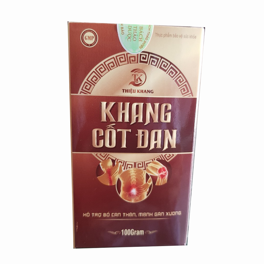 Thực phẩm bảo vệ sức khỏe KHANG CỐT ĐAN (hộp 100g) Khang Cốt Đan là sản phẩm bảo vệ sức khỏe được nghiên cứu và ứng dụng bởi Công ty Cổ phần Y dược Thiệu Khang.