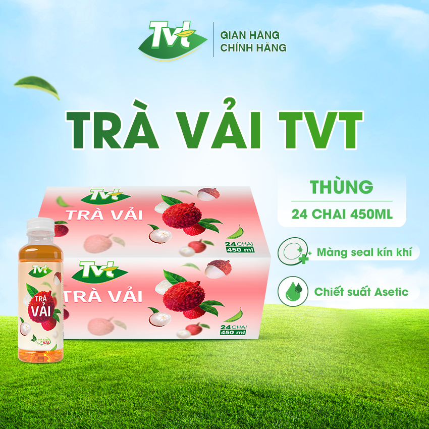 Trà Vải TVT Trà Vải TVT mang đến hương vị thanh mát của trái vải tươi cùng sự kết hợp tinh tế giữa trà xanh và trà đen. Sản phẩm không chỉ giúp giải khát