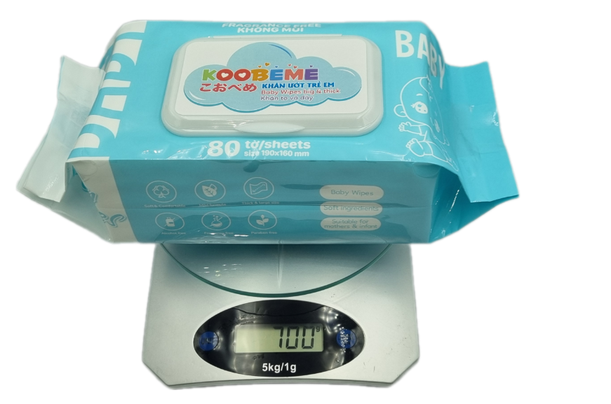Mua tại TiktokMã sản phẩm này 1 thùng gồm 4 gói. Khăn ướt trẻ em Koobeme không mùi, khăn to và dày. Gói đủ 80 tờ. Khối lượng một gói 700g. Khăn thấm ướt nước vừa phải, đều khăn. Quy cách khăn: 16 cm x 19cm, dày 50gsm, hoa văn tròn Thành phần: Nước tinh khiết 99,99% , khăn được làm bằng vải không dệt cao cấp Không chứa Paraben, Không Cồn, Không hương. Không hoá chất mỹ phẩm. Không gây kích ứng da Thích hợp cho da nhạy cảm, sử dụng cho mẹ và bé, và cả gia đình Công dụng: lau vệ sinh tay, mặt, và toàn thân cho cảm giác sạch nhẹ nhàng như khi rửa với nước thông thường. Sản phẩm được sản xuất theo dây chuyền tự động, đảm bảo vệ sinh an toàn