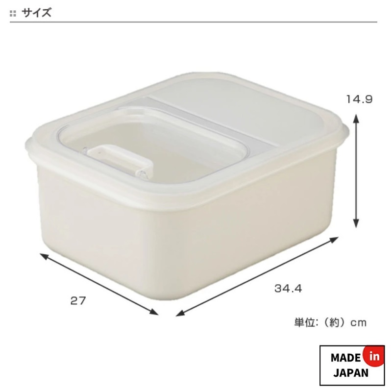 - Khả năng chịu được nhiệt độ từ -20 ~ 140°C, không sản sinh ra các hoạt chất gây hại trong quá trình sử dụng ■ Công dụng: ● Dùng để chứa đựng gạo hay các loại thực phẩm, đồ khô trong gia đình, nhà hàng, quán ăn... ● Rất tiện dụng với nắp bật mở nhẹ nhàng cùng cốc đong tiện lợi ■ Sản phẩm được nhập khẩu trực tiếp từ Nhật Bản ■ Sản xuất tại Nhật Bản | MADE IN JAPAN