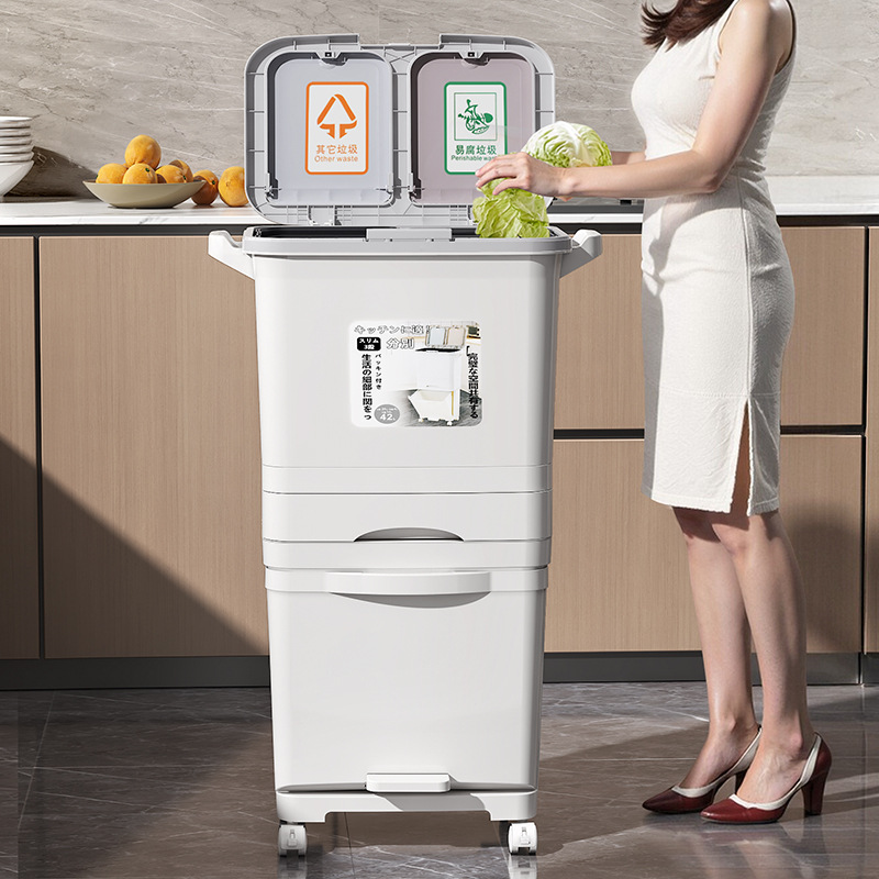 - Thùng rác nhiều ngăn, có thể phân loại rác khô và rác ướt, rác dùng tái chế