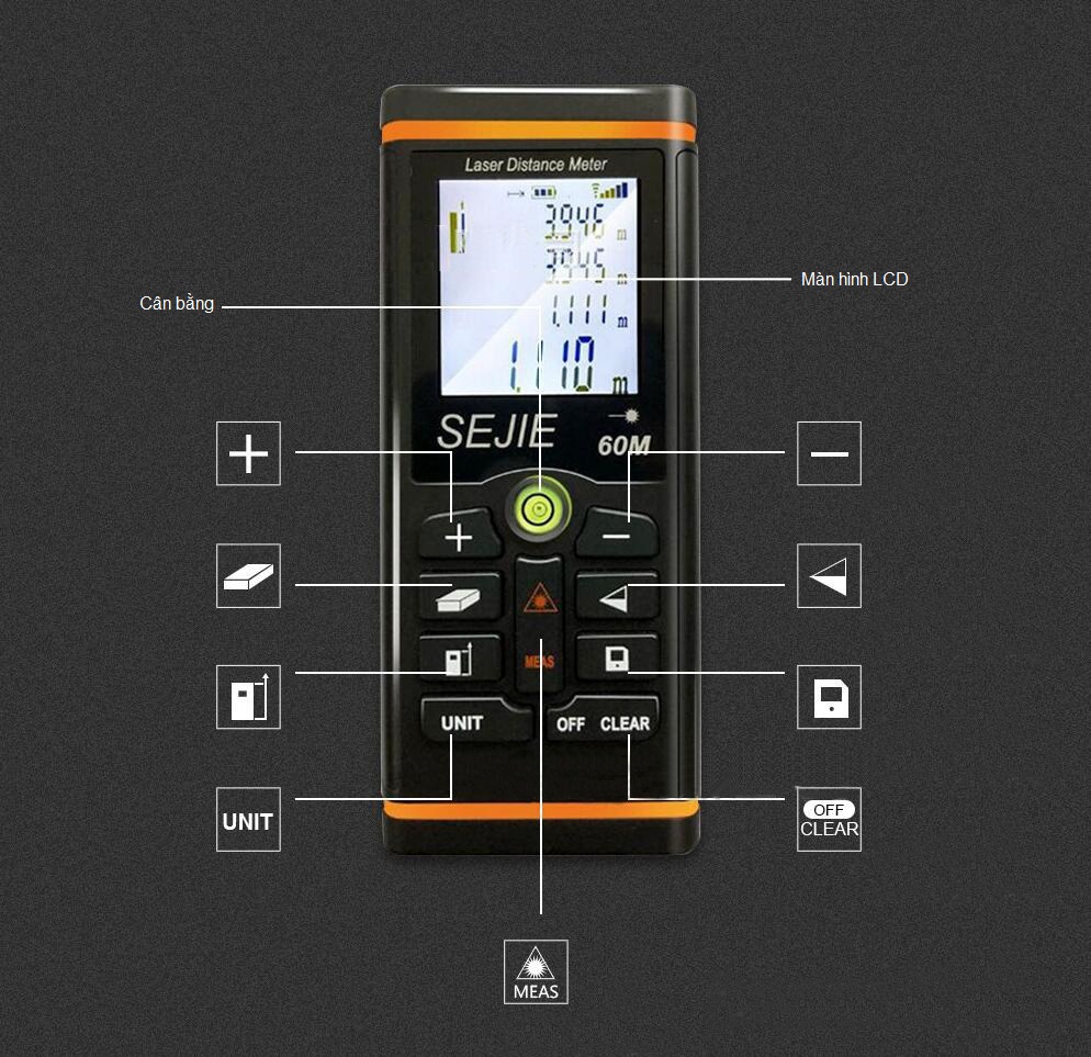 Thiết bị đo khoảng cách laser đa năng cầm tay SEJIE-SJM60 chính hãng.