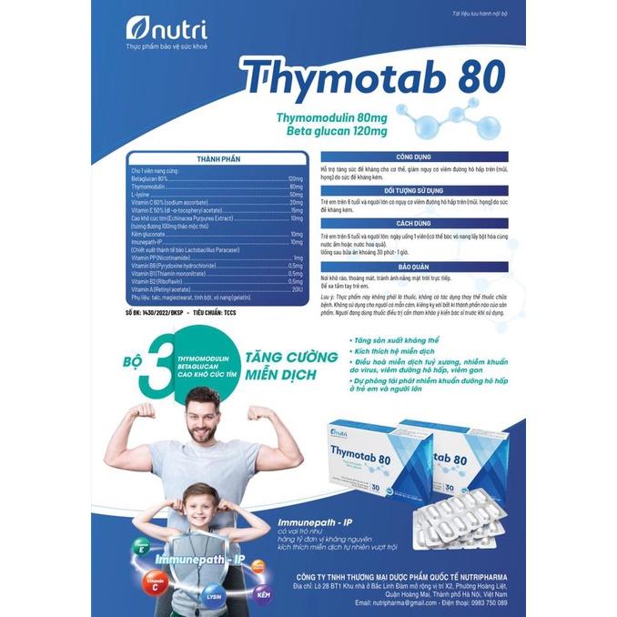 ✨Thymotab 80 - Hỗ trợ sức đề kháng cho cơ thể, giảm nguy cơ viêm đường hô hấp trên – (hộp 30 viên)