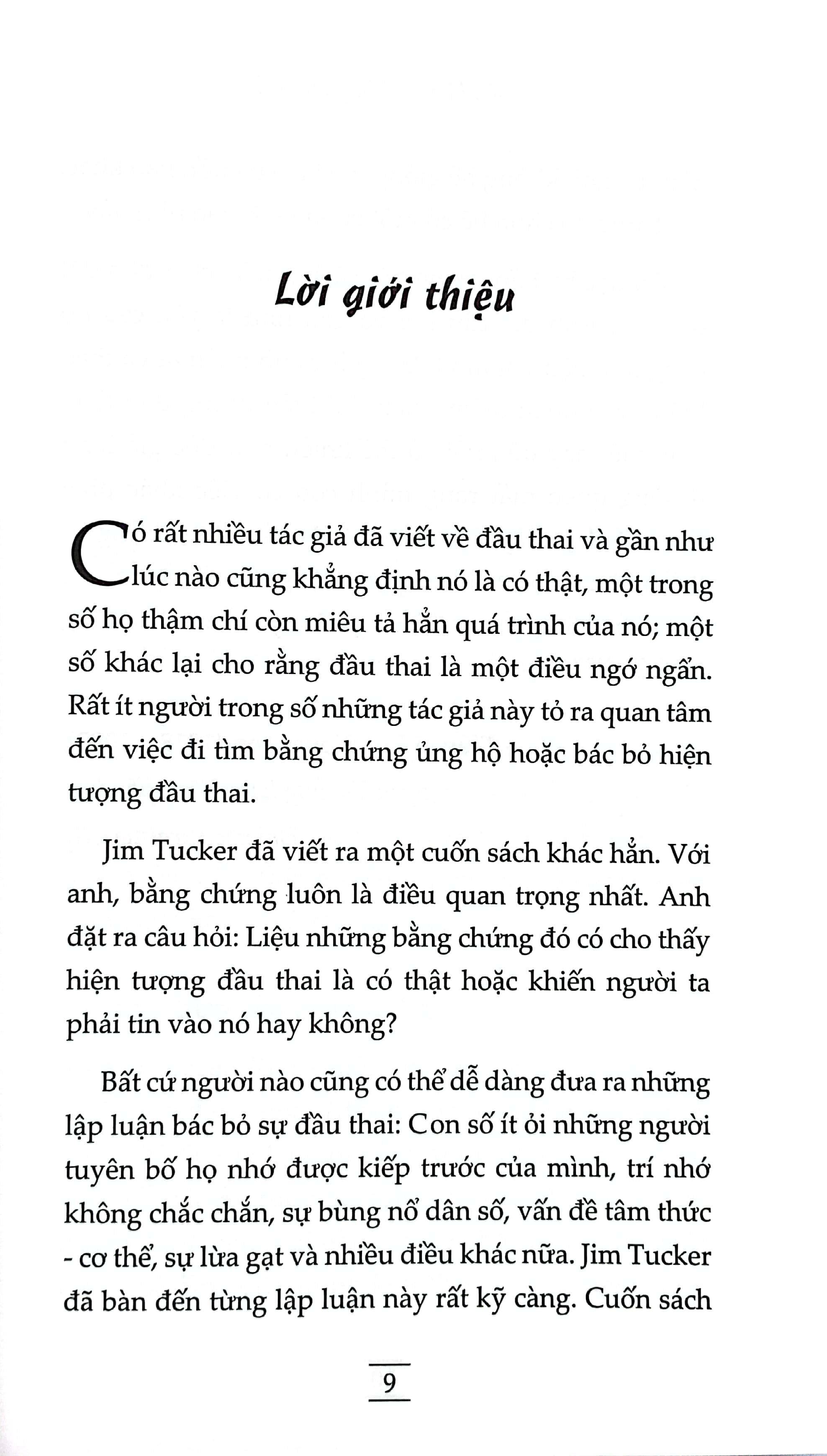 Có rất nhiều tác giả đã viết về đầu thai và gần như lúc nào cũng khẳng định nó là có thật, một trong số họ thậm chí còn miêu tả hẳn quá trình của nó; một số khác lại cho rằng đầu thai là một điều ngớ ngẩn. Rất ít người trong số những tác giả này tỏ ra quan tâm đến việc đi tìm bằng chứng ủng hộ hoặc bác bỏ hiện tượng đầu thai. Trong cuốn sách “Tiền kiếp có hay không” của tác giả Jim r cũng viết về khả năng ghi nhớ tiền kiếp ở trẻ nhỏ. Theo tác giả “Một số trẻ nhỏ nói rất nhiều chi tiết về kiếp trước của mình và thường miêu tả cách mình đã chết như thế nào. Đúng là trẻ nhỏ thì rất hay nói và chúng ta có thể nghĩ đơn giản là các em đang tưởng tượng. Nhưng, giả sử có người lắng nghe các em nói và sau đó thử tìm hiểu xem những sự kiện các em miêu tả có từng xảy ra thật hay không thì sao? Và giả sử khi đến những địa điểm bọn trẻ đã kể ra, những người đó phát hiện thấy những điều các em nói về sự kiện trong quá khứ là có thật thì sao?” Cuốn sách bao gồm 10 chương: Chương 1: Những đứa trẻ có ký ức về cuộc sống kiếp trước. Chương 2: Quá trình điều tra Chương 3: Những cách giải thích cần xem xét Chương 4: Bị đánh dấu cả đời Chương 5: Nhớ về quá khứ Chương 6: Những hành vi khác thường Chương 7: Nhận ra những gương mặt quen thuộc Chương 8: Kí ức về khoản thời gian giữa hai kiếp Chương 9: Những quan điểm trái ngược Chương 10: Các kết luận và suy đoán