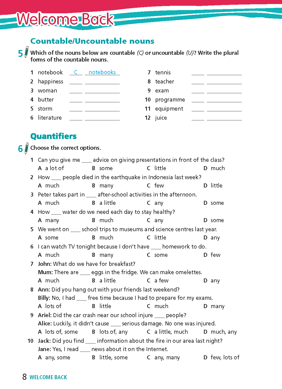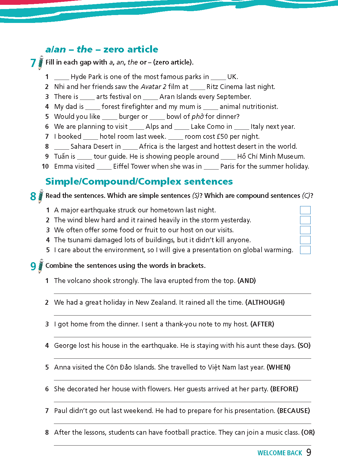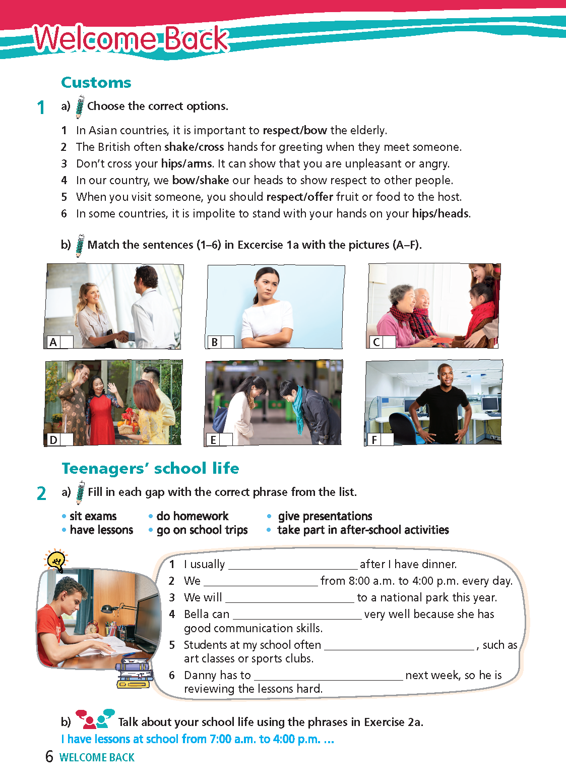 Tiếng Anh 9 Right On (WORKBOOK) WELCOME BACK (Bài 1,2 Trang 4)