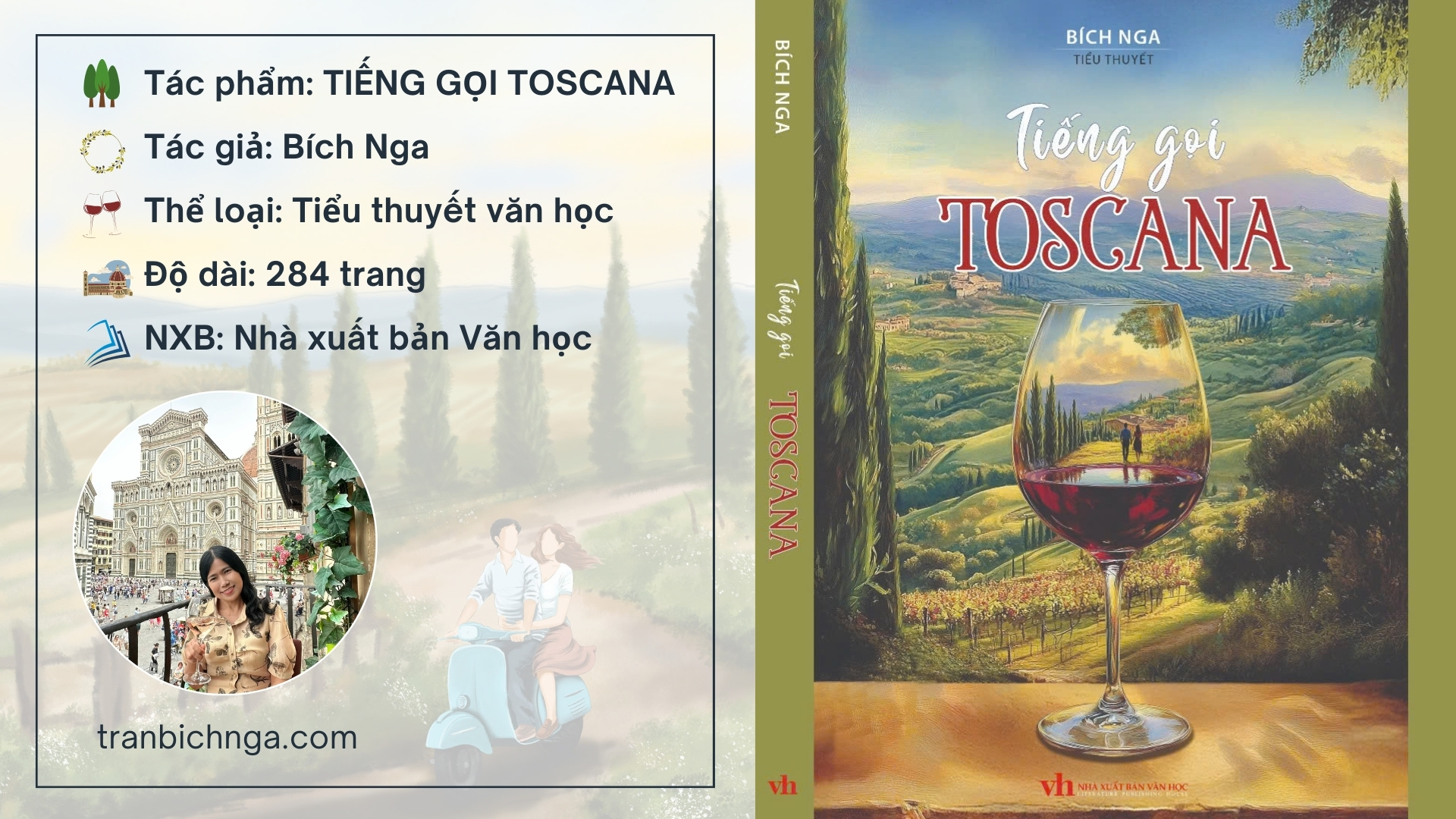 Xoay quanh hai nhân vật chính là Bảo và Caterina, tác phẩm như một bản tình ca xuyên biên giới với rất nhiều chuyến đi và trải nghiệm ẩm thực. Toscana là một vùng đất thơ mộng thuộc miền Trung nước Ý với những cánh đồng đẹp như tranh vẽ cùng hàng cipresso uốn lượn trên sườn đồi, rất nổi tiếng về đặc sản rượu vang, ô liu và nền ẩm thực đậm chất truyền thống. Thủ phủ vùng Toscana là thành phố Firenze, nơi được xem là cái nôi của nghệ thuật Phục hưng. Sẽ có thật nhiều trang viết về thành phố Firenze bình yên và cổ kính, những ngày đi về miền quê Siena hay cảnh sinh hoạt ở trang trại nho vùng Toscana, còn có những món ăn ngon mang linh hồn xứ sở... Trong tiếng Anh, Toscana được gọi là Tuscany còn Firenze là Florence.