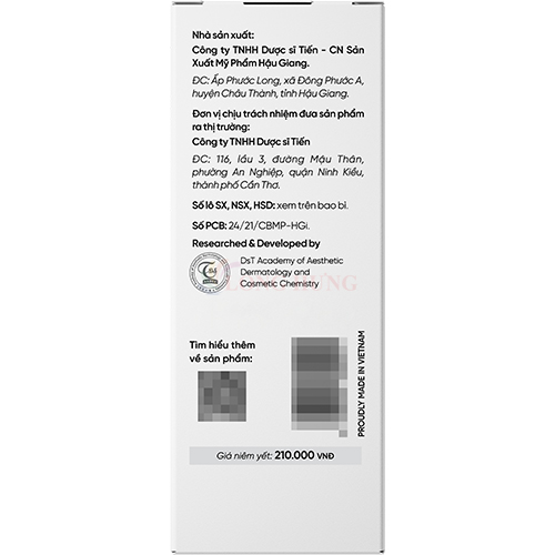+ Công dụng: - Thúc đẩy tái tạo da, tăng sinh tế bào mới tươi trẻ, mịn màng. - Cung cấp ẩm sâu giúp da căng mướt, làm mềm vùng da thô ráp, sần sùi. - Làm giảm thâm nám,