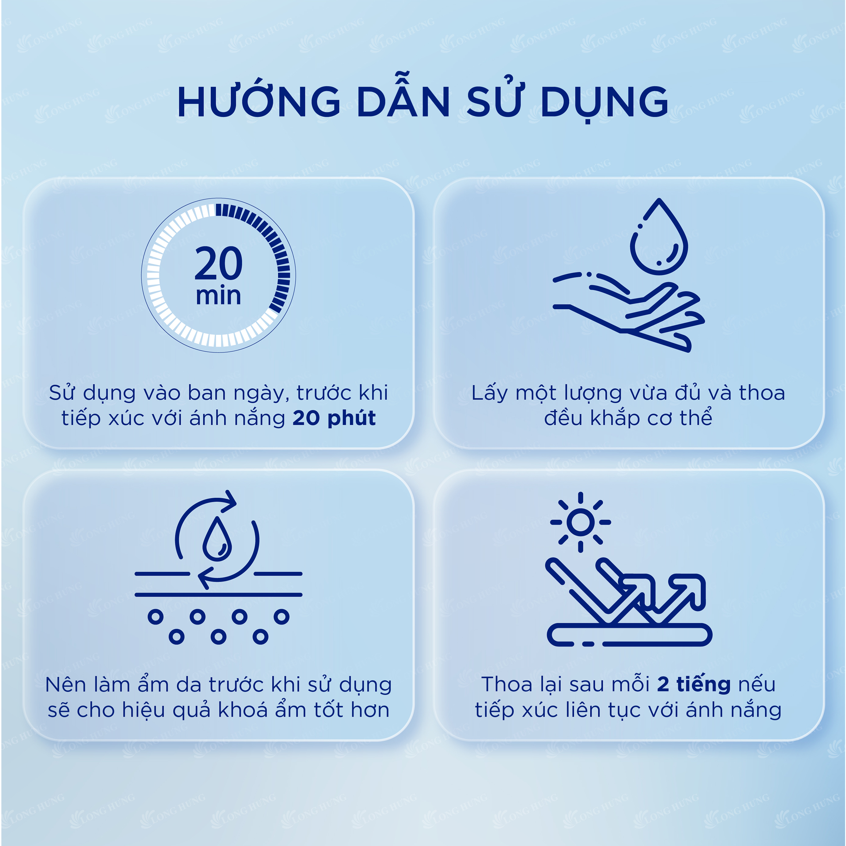 CÔNG DỤNG - Dưỡng ẩm căng mướt tự nhiên nhờ chiết xuất hạt ý dĩ - Dưỡng da trắng hồng tự nhiên, nâng tone da nhẹ nhàng - Chống nắng body với chỉ số chống