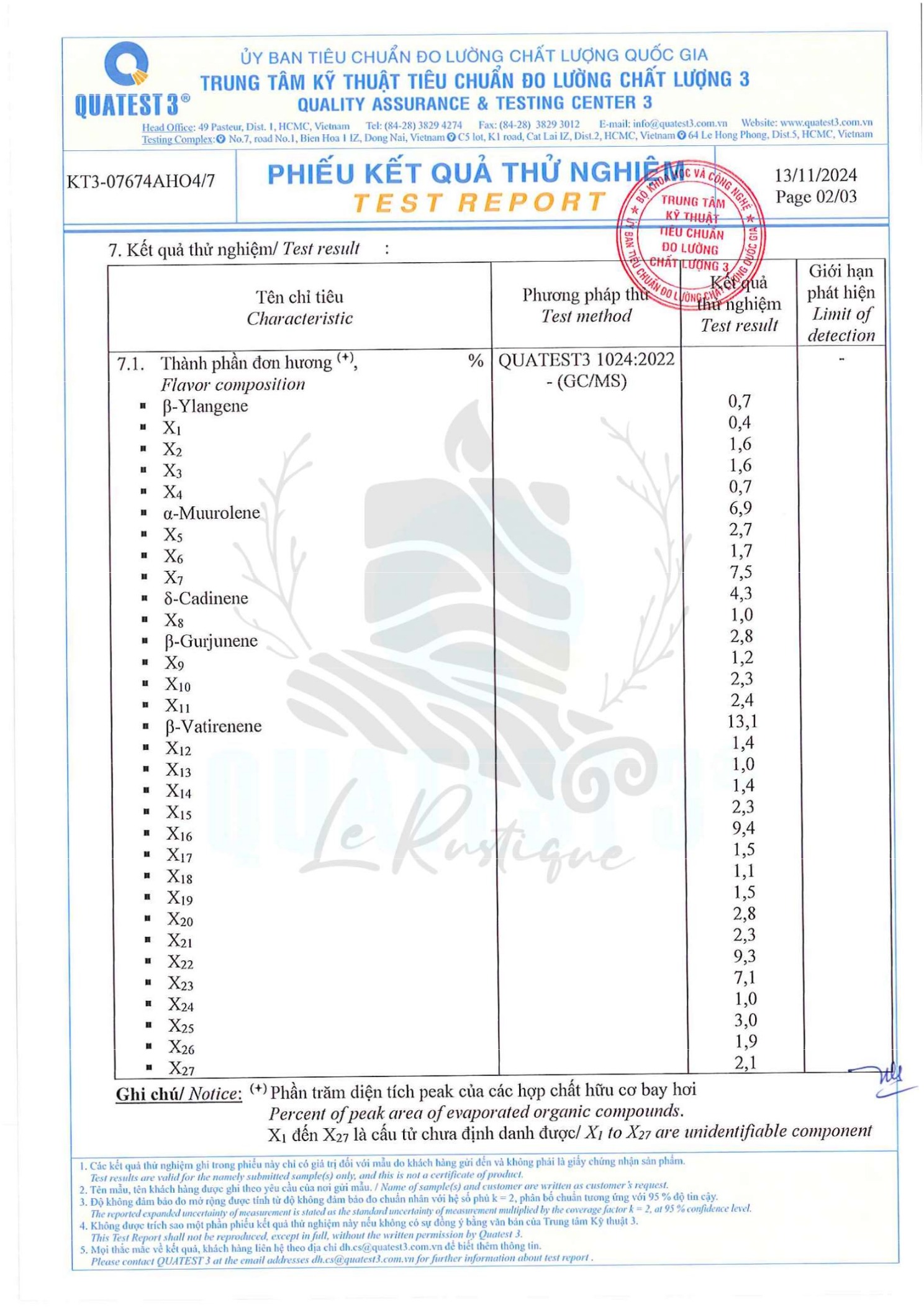 ► LƯU Ý: Việc tính toán nồng độ tối đa cho phép căn cứ trên hàm lượng Isoeugenol trong tinh dầu là 1%, cùng với mức giới hạn 0,027% cho Isoeugenol trong các sản phẩm dầu và kem dưỡng thể (Category 5A - IFRA 2023) mặc dù Isoeugenol không thường được tìm thấy trong tinh dầu cỏ hương bài có nguồn gốc ở Ấn Độ(*).