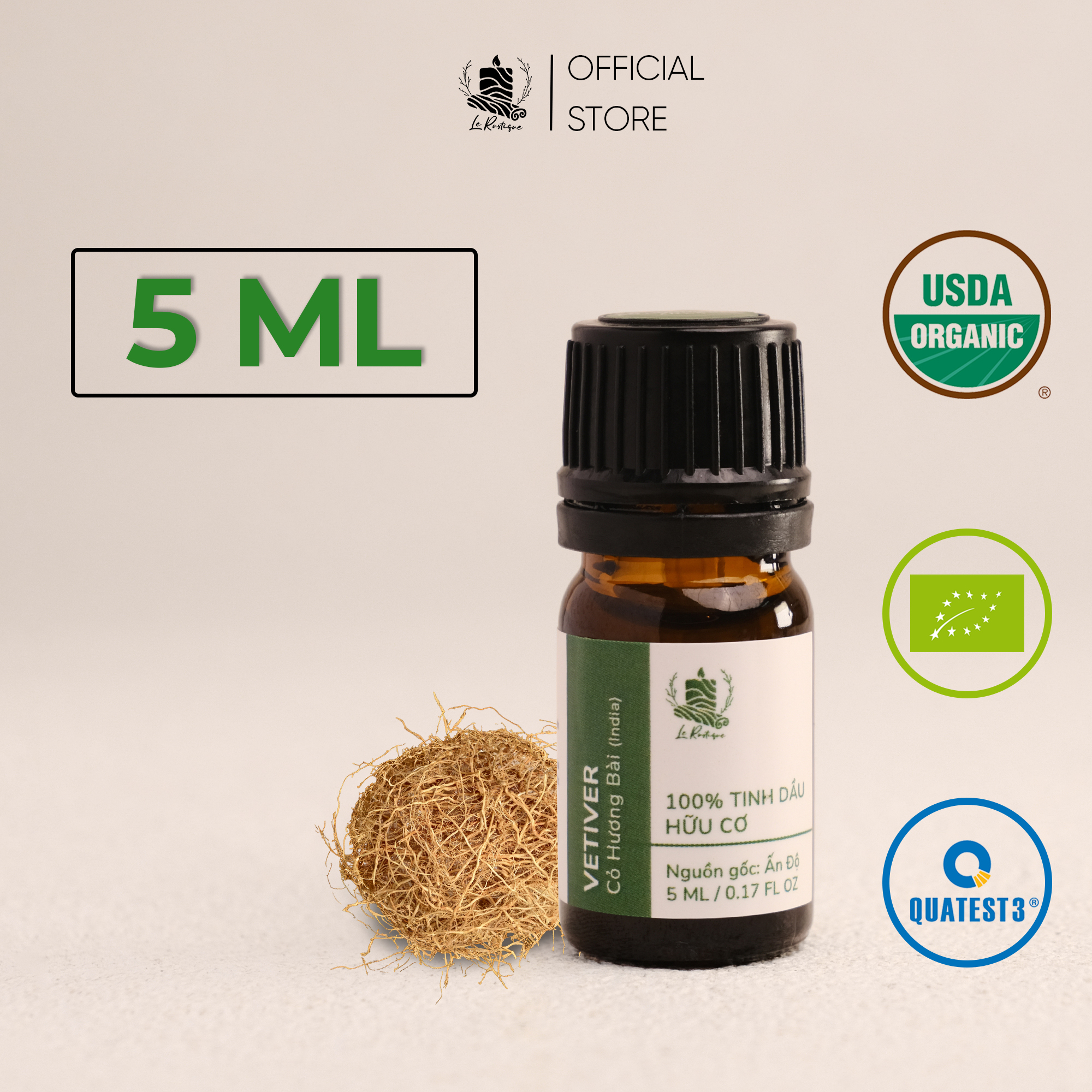 ► Sản phẩm: Tinh Dầu Cỏ Hương Bài (Ấn Độ) - 100% Nguyên Chất Hữu Cơ - Le Rustique - Tinh Dầu Bản Địa Ấn Độ
