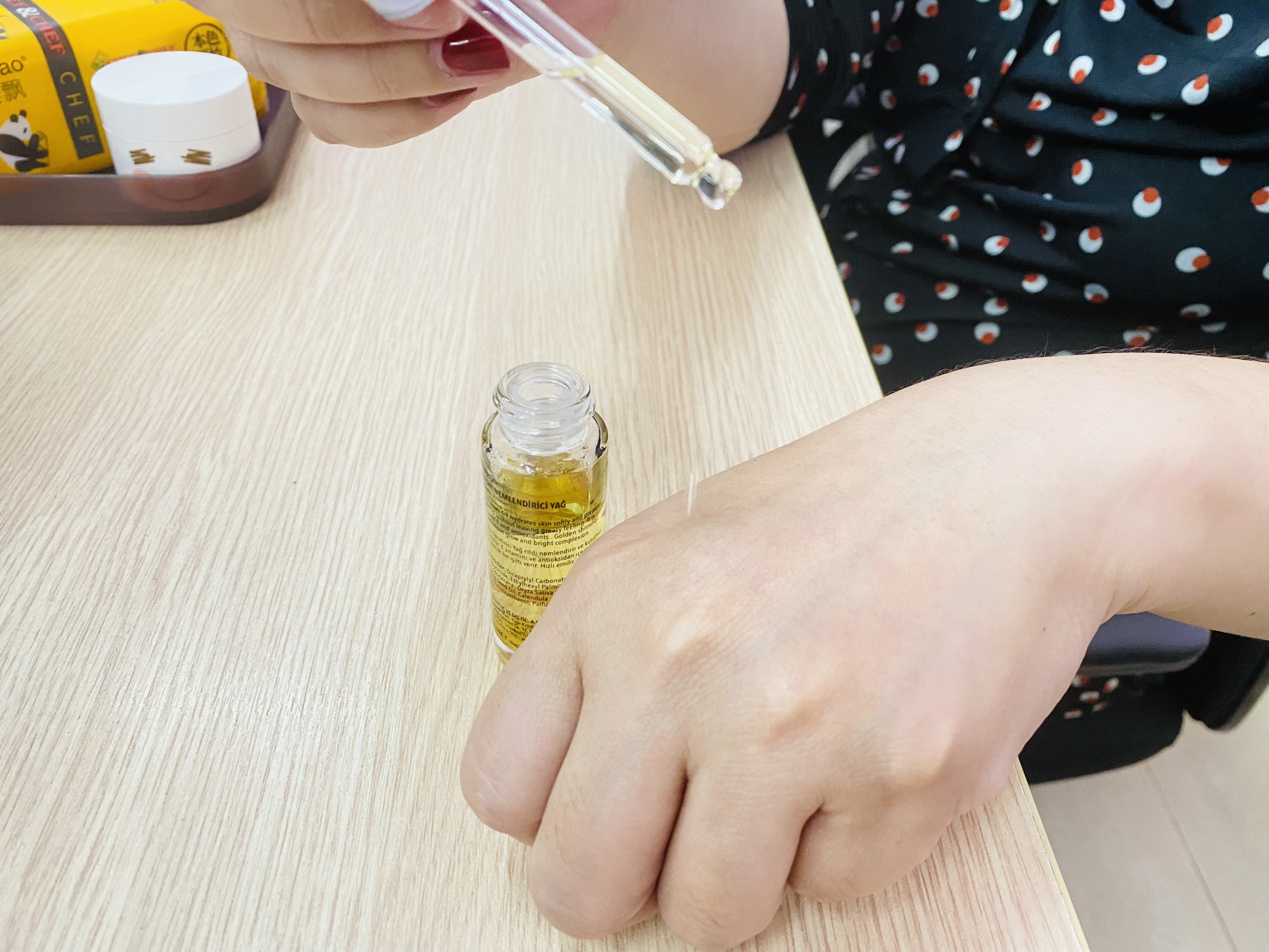 - Hoặc pha (mix) tinh chất lót này với kem nền , trộn đêu rồi chấm từng đốm nhỏ trên mặt và tán đều.