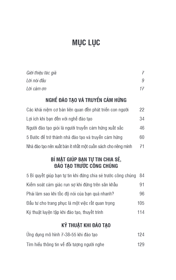 • Nhà đào tạo và giảng viên: Cuốn sách này là công cụ hữu ích cho những người làm công tác đào tạo và giảng dạy, giúp cải thiện kỹ năng và nâng cao hiệu quả trong công việc hằng ngày.