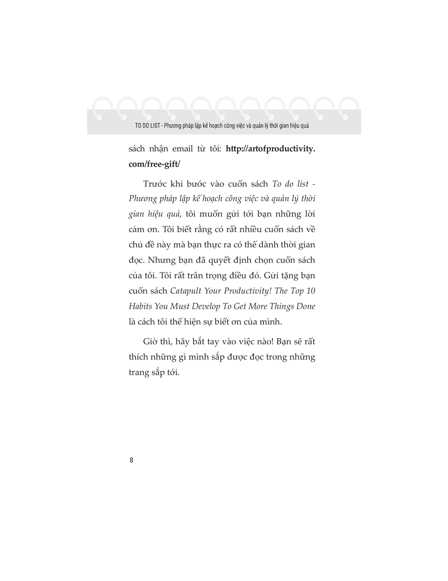 - Bạn thường xuyên hay quên và trễ deadline? Hàng triệu người cũng rơi vào cảnh giống như bạn - tức là không thể lập và sử dụng danh sách việc cần làm một cách hợp lý. Để học tập và làm việc hiệu quả, bạn cần có “TO DO LIST” hữu ích. “To do list” là danh sách các việc bạn liệt kê, thực hiện và giám sát chính m.ình để hoàn thành mục tiêu công việc hiệu quả, đúng kế hoạch. Tạo lập “To do list” hiệu quả giúp bạn không bị rối, mọi việc được làm đảm bảo theo thứ tự rõ ràng, theo thứ tự ưu tiên việc quan trọng. Trong cuốn sách “TO DO LIST – Phương pháp lập kế hoạch công việc và quản lý thời gian hiệu quả”, tác giả Damon Zahariades sẽ trình bày một công thức ngắn gọn và thực tế để giúp bạn tổ chức, quản lý và giải quyết từng nhiệm vụ quan trọng của bản thân để cải thiện tối đa năng suất. Bạn đọc có thể dễ dàng kiểm tra tiến độ làm việc của m.ình trong một ngày, tuần, tháng,… cũng như kiểm soát được tổng thể công việc. Với cuốn sách TO DO LIST, bạn sẽ khám phá: