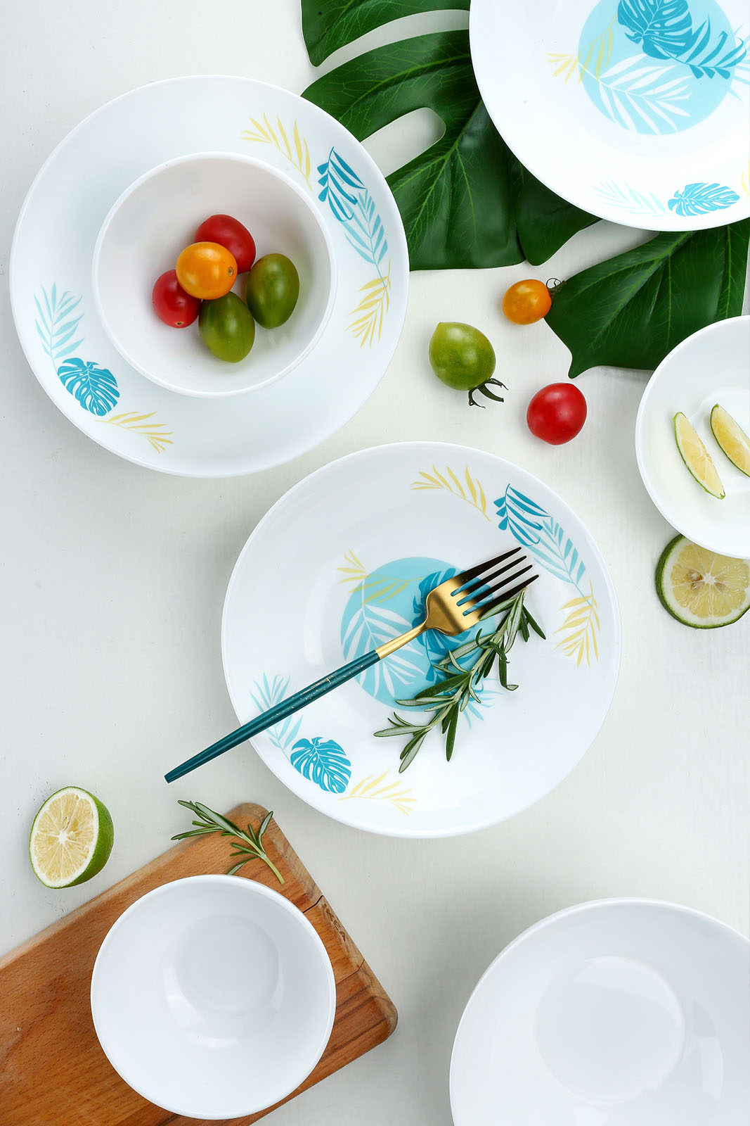 - Đặc tính nổi bật: cường lực, kháng vỡ nhiều lần so với thuỷ tinh thông thường. Thiết kế lá mostera nhiệt đới tạo cảm giác mát mẻ cho bàn ăn.