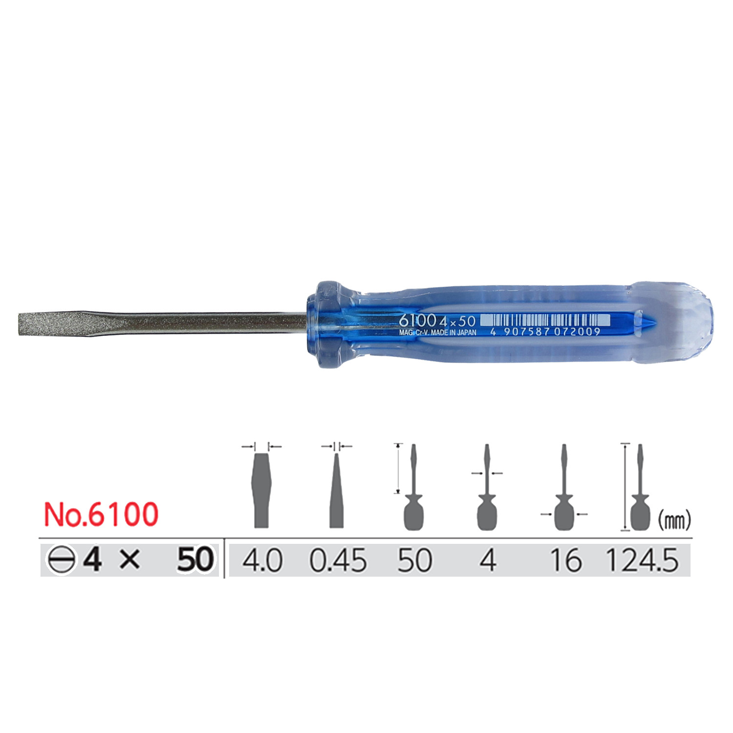 ✨Tô vít thân mảnh mũi dẹt cán nhựa trong No.6100 Vessel sản xuất tại Nhật Bản
