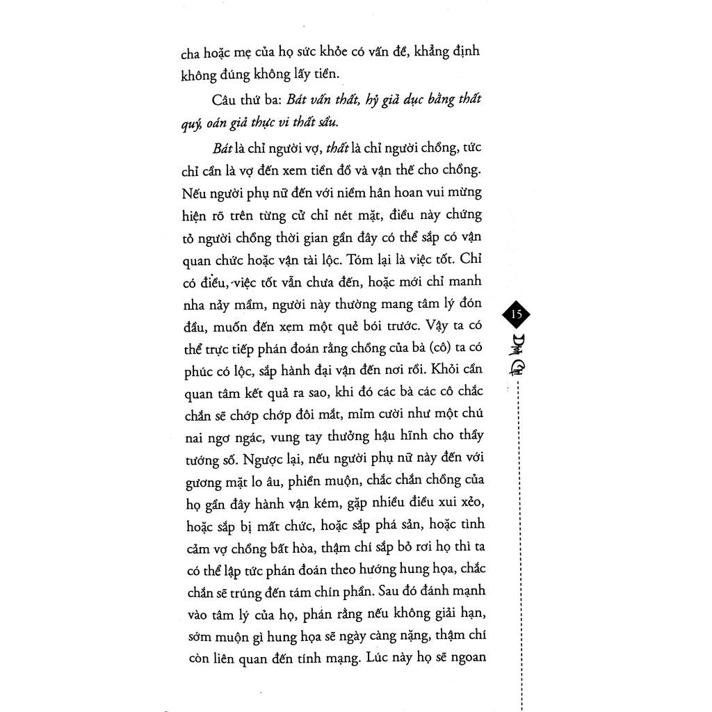 “Phàm đến xem tướng số tựu chung có: cha mẹ xem cho con cái, con cái xem cho cha mẹ; Vợ xem cho chồng, chồng xem cho vợ; Sĩ tử, kẻ lắm tiền, người quyền cao tước trọng xem cho bản thân mình.