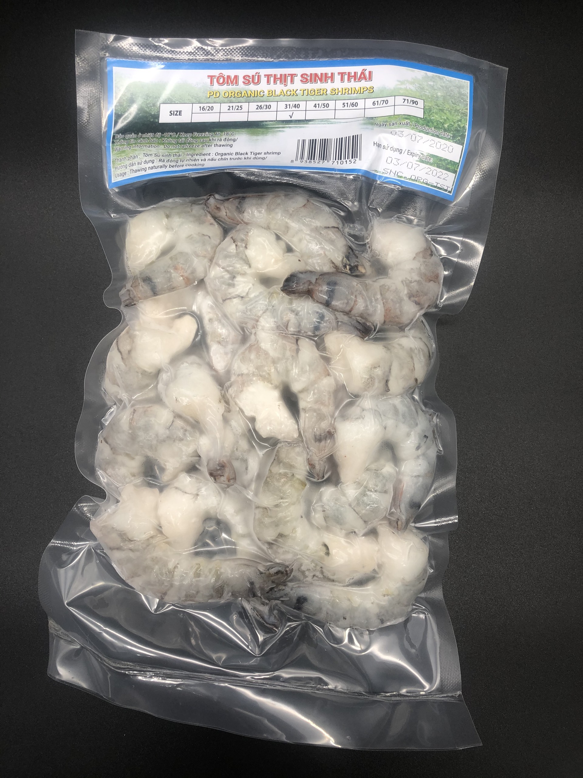 ***Tôm sú thịt sinh thái đông lạnh được đóng túi, cấp đông lúc tươi, tôm khi rã đông đảm bảo vẫn giữ được độ ngon và vị ngọt của tôm.