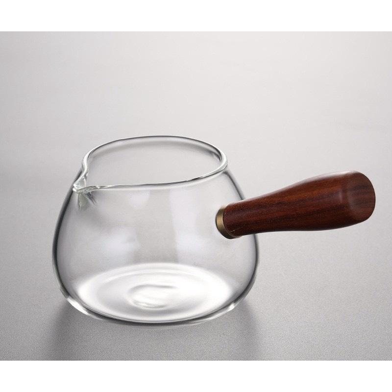 Chén tống rót trà thủy tinh cao cấp, ốp gỗ cách nhiệt dung tích 265ml