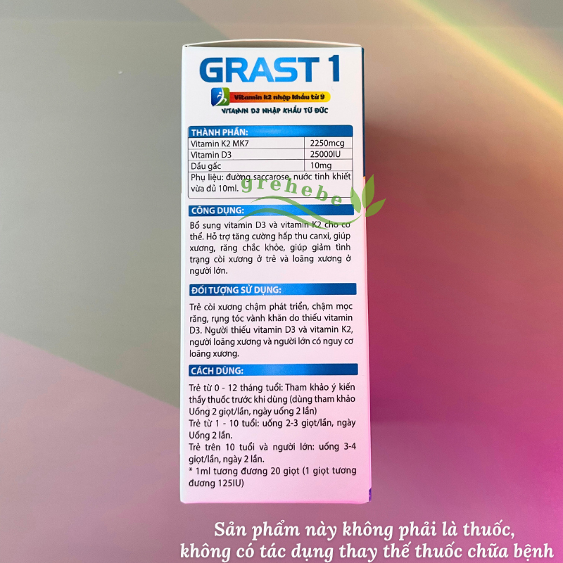 ✨[TPBVSK] Grast 1 Bổ Sung Vitamin K2+D3 Hỗ Trợ Tăng Cường Hấp Thu Canxi Cho Bé