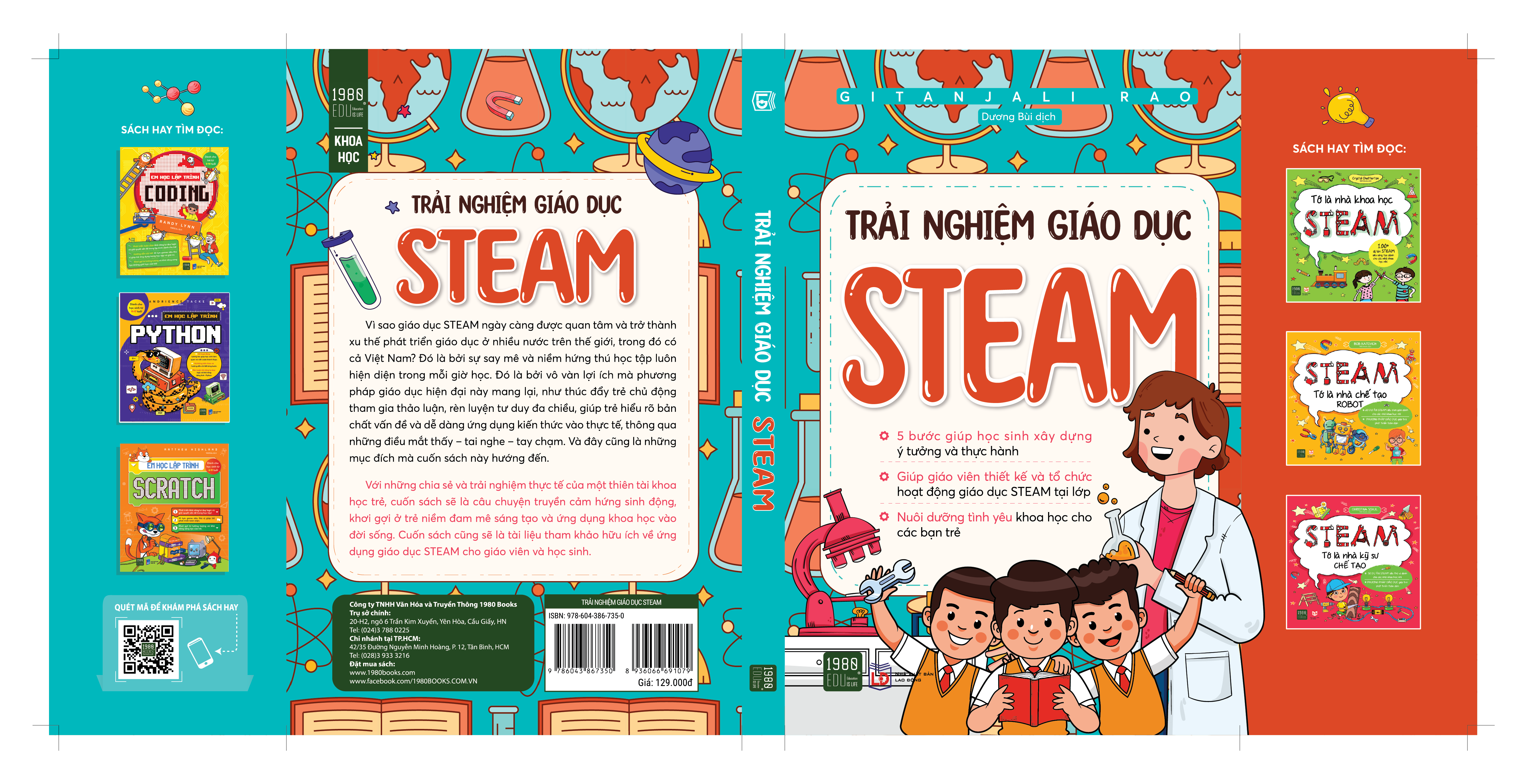 Tác giả: Gitanjali Rao Người dịch: Dương Bùi THÔNG TIN XUẤT BẢN: Kích thước khổ: 14 x 20.5 Số trang: 263 Mã EAN: 8936066691079 NXB liên kết: NXB Lao Động Sách do Công ty TNHH Văn hóa và Truyền thông 1980 BOOKS mua bản quyền và ấn hành quý I/2023 Trải Nghiệm Giáo Dục Steam   Giáo dục STEAM ngày càng được quan tâm và trở thành xu thế phát triển giáo dục ở nhiều nước trên thế giới, trong đó có cả Việt Nam. Phương pháp mới này mang lại sự say mê và niềm hứng thú học tập trong mỗi giờ học, và hơn hết là vô vàn lợi ích như thúc đẩy trẻ chủ động tham gia thảo luận, rèn luyện tư duy đa chiều, giúp trẻ hiểu rõ bản chất vấn đề và dễ dàng ứng dụng được kiến thức vào thực tế. Và đây cũng là những mục đích mà cuốn sách này hướng đến.   Trải nghiệm giáo dục STEAM sẽ là chìa khóa giải mã tất cả những câu hỏi, những băn khoăn cho các bạn trẻ đam mê sáng tạo và mong muốn ứng dụng khoa học vào đời sống nhưng chưa biết bắt đầu từ đây hay đang gặp khó khăn trong quá trình triển khai.