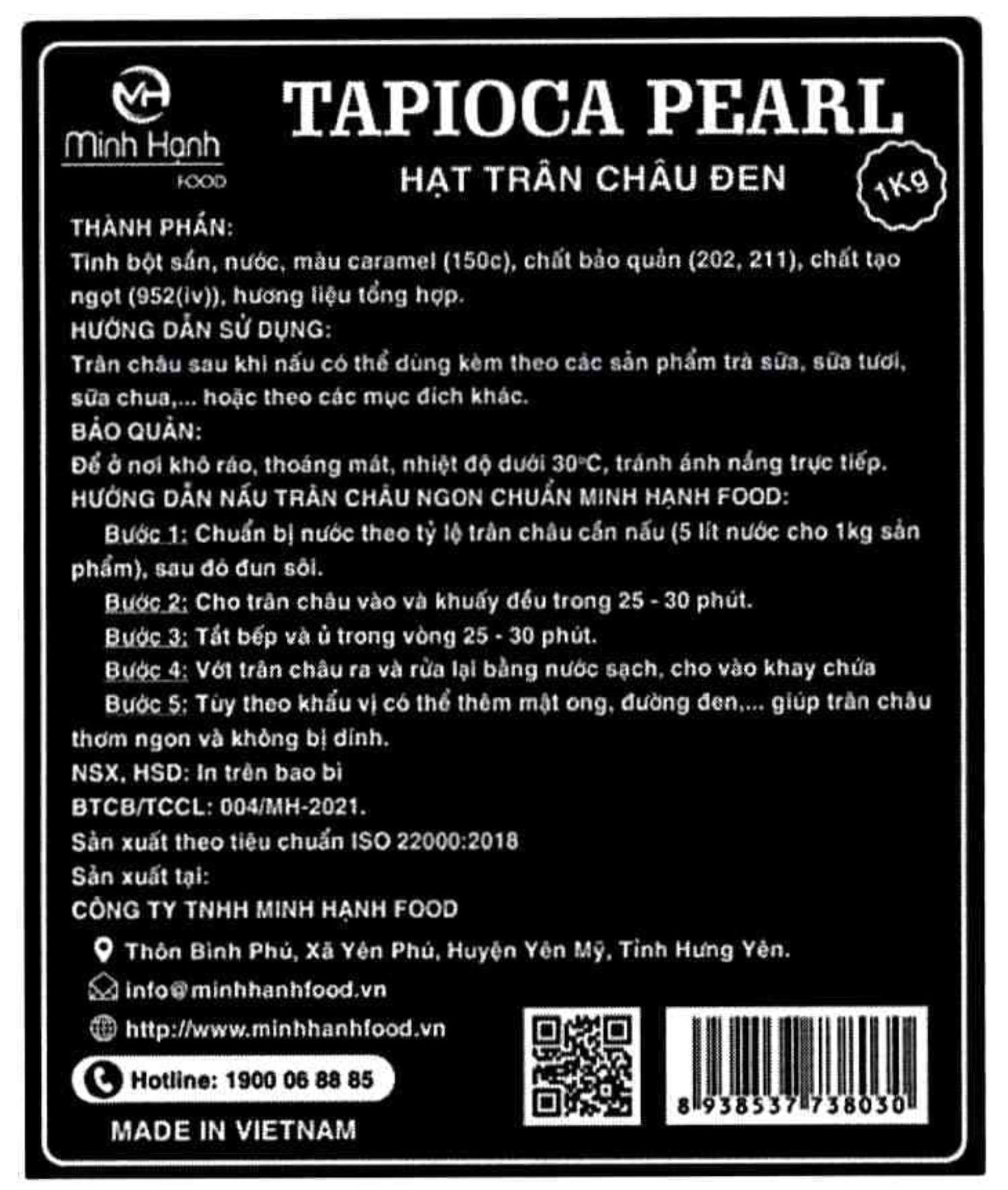Trân Châu Đen Minh Hạnh Gói 1 Kg - Dẻo Dai, Thơm Ngon, Không Bị Dính Đây là dòng sản phẩm cao cấp của Công ty Minh Hạnh, sau khi nấu chín có thể dùng