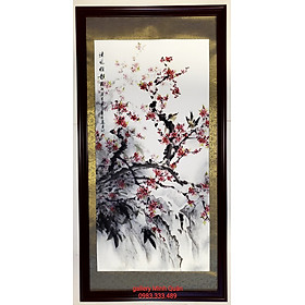 In tranh Canvas thủy mặc hoa đào đỏ trắng nở, mộc long đào hoa - In Kỹ Thuật Số Since 2006